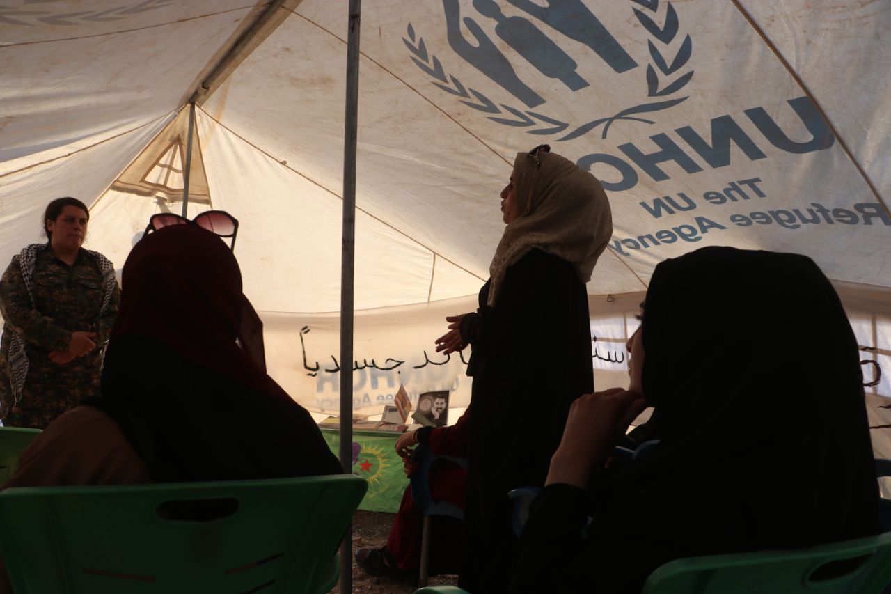 TEBQA – Genç Kadınlar Birliği, “Jin Jiyan Azadî ile Önder APO’nun fizki özgürlüğünü sağlayacağız” sloganıyla Tabqa’nın Mansura köyünde Devrimci Halk Savaşı konulu kamp açtı. Kamp 15 Arap genç kadının katılımıyla 7 gün boyunca devam edecek.