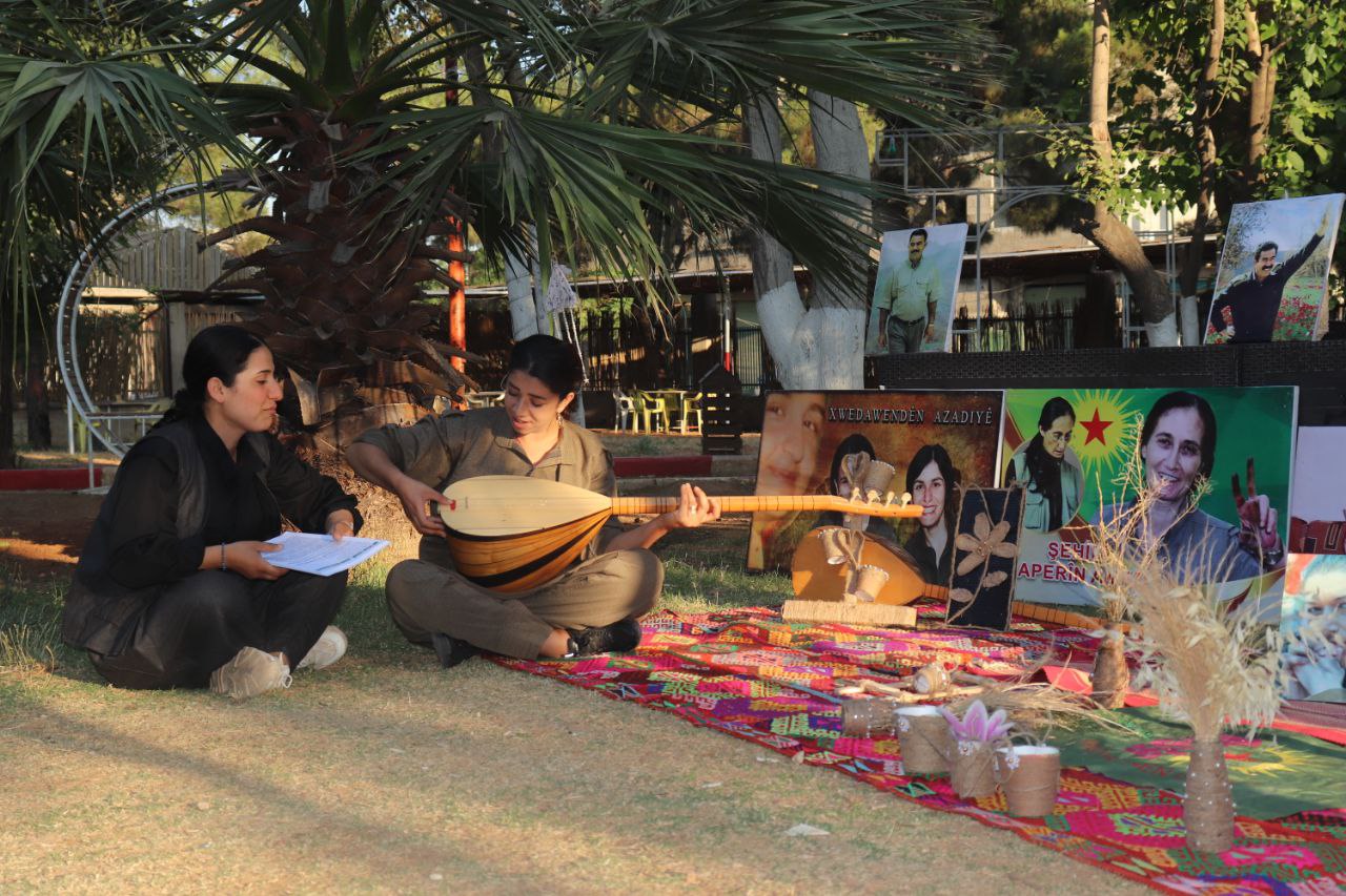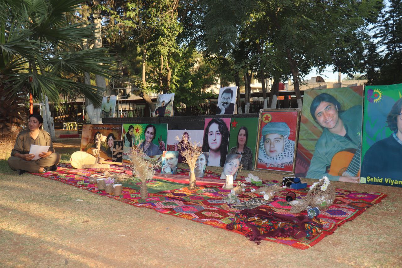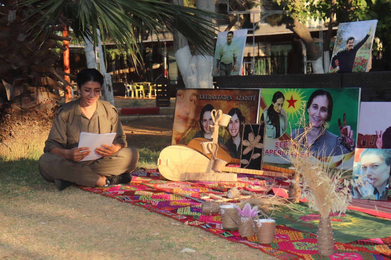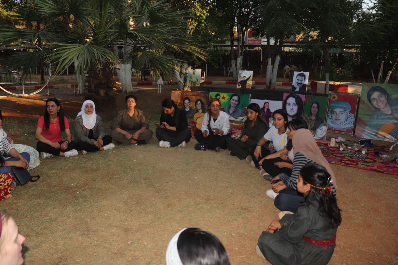 Kobanê Genç Kadınlar Birliği sözcüsü, Nayla Kobanê genç kadınlar adına şunları belirtti, “Genç kadınlar olarak şehitleri anmak için bir sergi düzenledik, özellikle 14 Temmuz’un yaklaşmasıyla Diyarbakır zindan direnişi şehitlerini anmak istedik. Ayrıca dağlardaki gerilla direnişine de dikkat çekmek istedik. Düşman kimyasal silahlarla ahlaksız bir savaş yürütüyor, gerillalar bu vahşi saldırılara karşı tarihi bir direniş sergiliyor. Ama her şeyden önce Önder APO üzerindeki tecrite dikkat çekmek istiyoruz. 2 yılı aşkın süredir Önder APO’dan haber alamıyoruz. Önder APO’nun fiziki özgürlüğü kesinleşinceye kadar biz genç kadınlar olarak her zaman ayakta olacağız”
