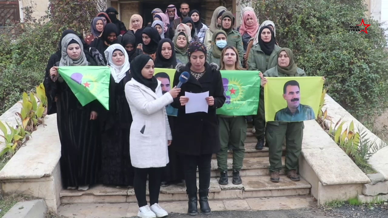 Bu bağlamda Mansur ilçesinde bu sabah Genç Kadınlar Birliği ve Sivil Konsey, ortaklığında Konsey önünde kamuoyuna bir açıklama yapıldı. Açıklamayı Mansur ilçesi Genç Kadın üyesi “Klezar Hanan” okundu.