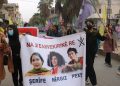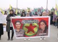Genç Kadınlar tarafından yürüyüş boyunca “Jin Jiyan Azadî” Bijî Berxwedana YJA- STAR” “Bijî Serok APO” sloganları atıldı.