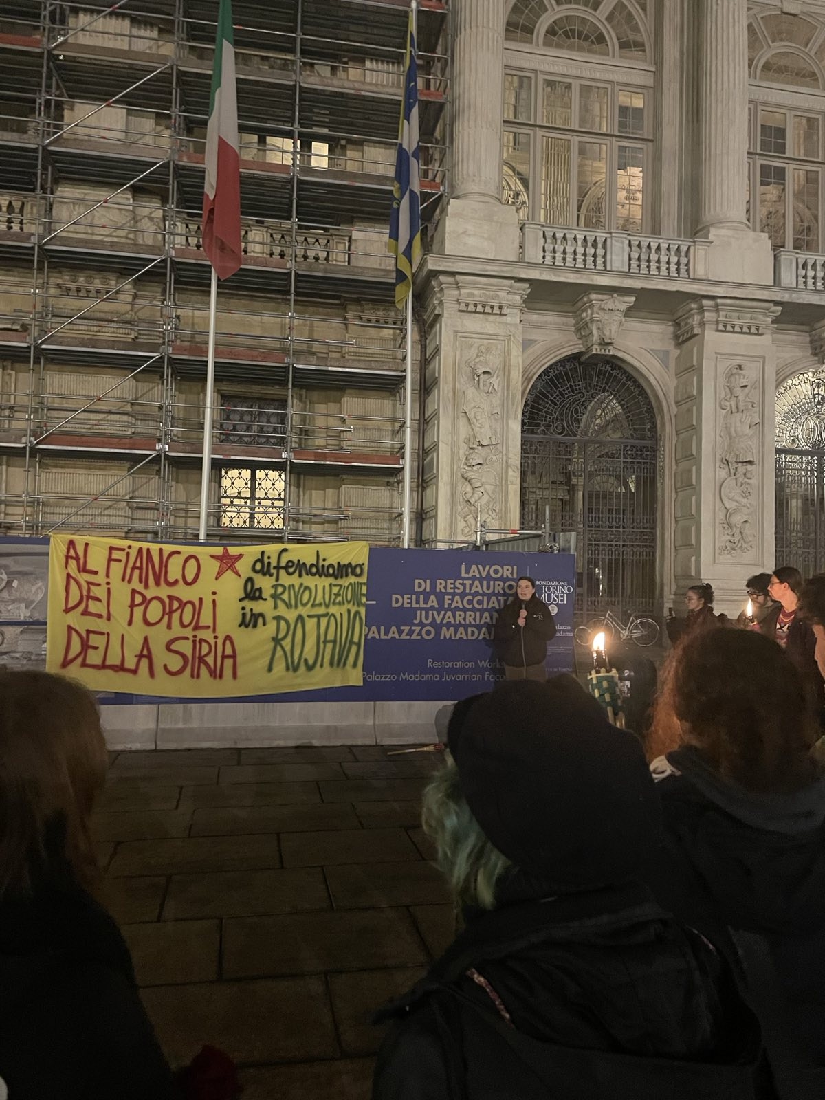 Torino sakinlerine ise gençler tarafından işgal saldırılarına dikkat çeken bildiriler dağıtıldı. Gençler tarafından eylem boyunca Rojava’ya dönük saldırıların son bulması için, İtalyanca açıklamalar yapılarak kamuoyunun gerekli desteğinin vermesi gerektiğinin altı çizildi.
