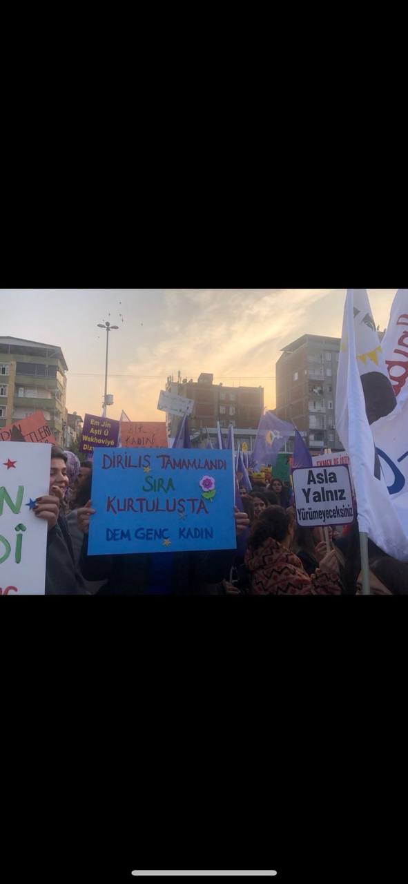 İSTANBUL – Taksim Tünel’in önünde bir araya gelen binlerce kadın, “Dem dema vejîna jinên ciwan e”, “Çi hat serê Rojin?”, “Dilovası’nda katlettiğiniz kadın işçiler için düzeninizle savaşacağız”, “Sermaye ve patriyarkaya karşı büyüt isyanı”, “Rojava’dan Filistin’e direnen özgür kadınlar kazanacak”, “Rojin’den vazgeçmiyoruz”, “Yaşasın kadın devrimi” ve “Kadın mücadelesi özgür yaşamın manifestosudur”, “Kadın cinayetlerine son”, “Şüpheli kadın ölümleri aydınlatılsın”, “Kalanların gidenlere borcudur mücadele”, “Sönmeyen bir ateşi ablukada tutsamazsınız”, “Çi bi serê Rojin’ê hat” dövizlerinin yanı sıra Önder Apo’nun cezaevi havalandırmasından Jineoloji Akademisi’ne gönderdiği çiçek dalının olduğu döviz ile PKK’nin kurucu kadrolarından Sakine Cansız’ın fotoğrafını taşıdı.