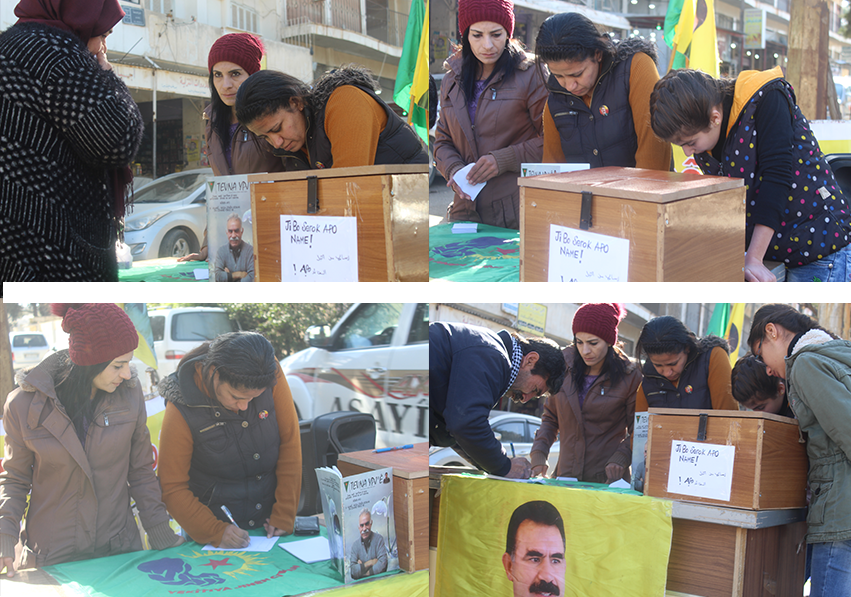 DERİK – Halklar Önderi Abdullah Öcalan üzerindeki ağırlaştırılmış tecride karşı Genç Kadınlar Birliği Rojava ve Kuzey Suriye’de mektup kampanyası başlattı. Kampanya öncülük eden genç kadınlar kent kent stant kurarak Halklar Önderi Abdullah Öcalan’a mektup yazdılar.