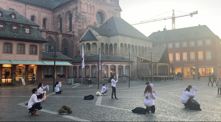 MAİNZ -Saat 15’te Mainz’de bir araya gelen TEKO-JIN ve JXK aktivistleri, kadına karşı uygulanan şiddetlere ve cinayetlere karşı bir sivil itaatsizlik eylemi gerçekleştirdiler.