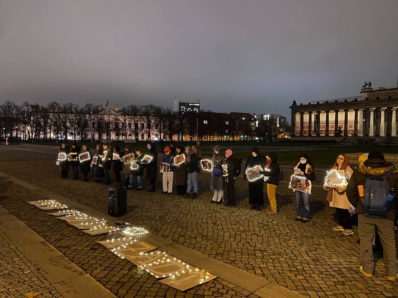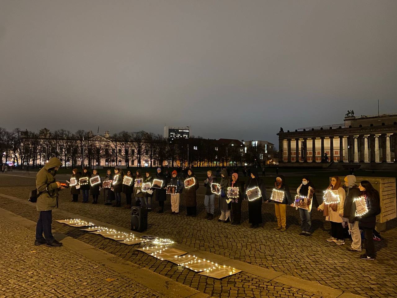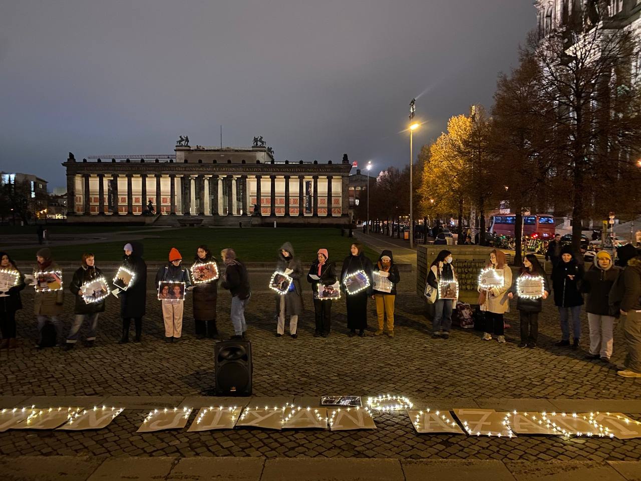 Berlin’in Berliner Dom caddesinde eylem yapan genç kadınlar, Önder APO üzerinde yürütülen ağırlaştırılmış mutlak tecride ve Rojava saldırılarına dikkat çekmek amacıyla, resim ve sözlerin yer aldığı dövizler taşıdı.