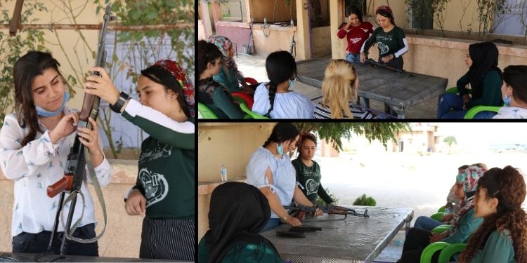 Genç kadınlar bu çerçevede öz savunma eğitimlerine ağırlık veriyor. Bugün aynı amaçla Qamişlo’da genç kadınlar silah eğitimi gördü.