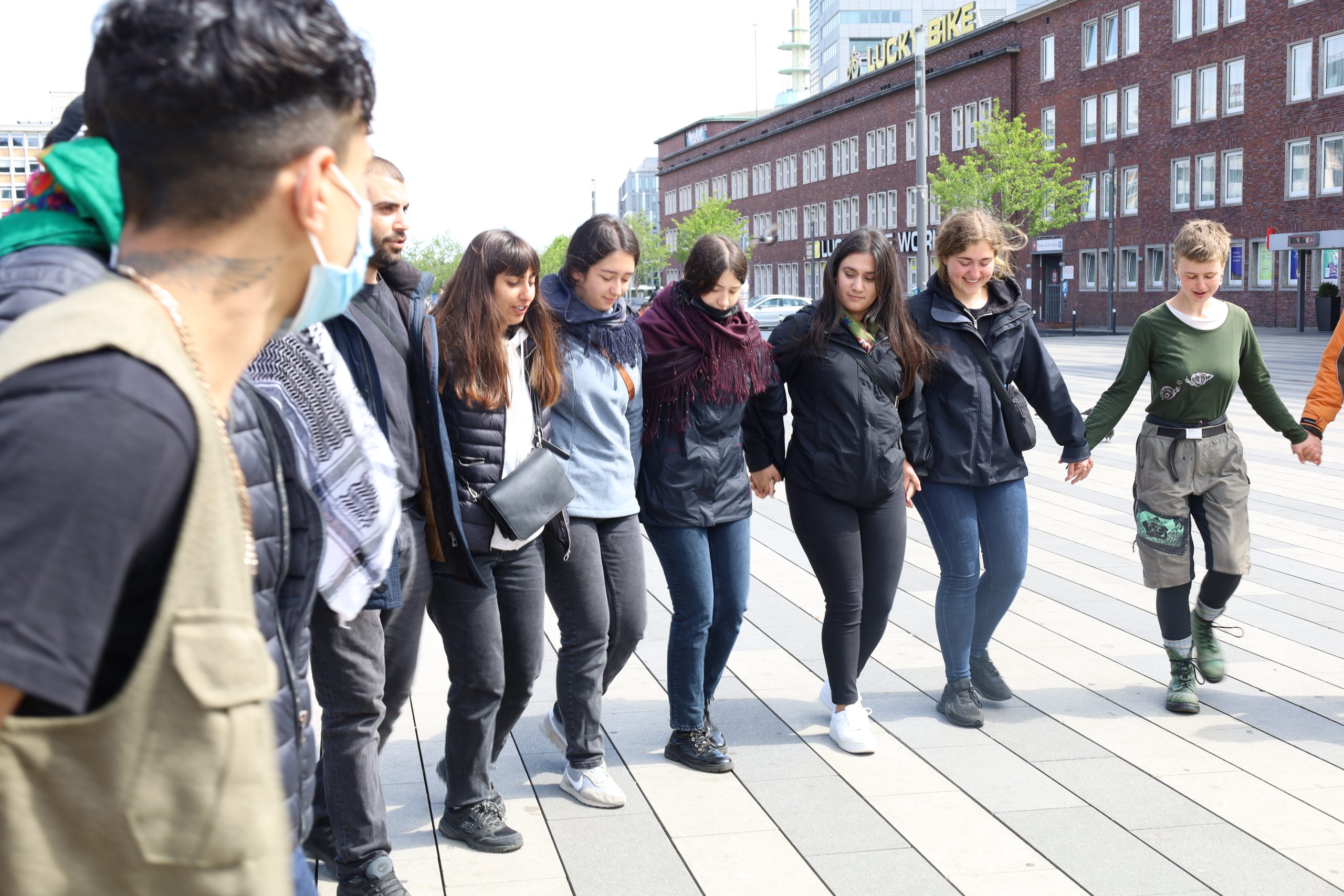 Gençler Uzun Yürüyüş eylemlerinin 2 gününü geride bırakırken, bugün saat 12.00 sularında Duisburg merkezi tren istasyonu önünde eylemlerini başlattı.