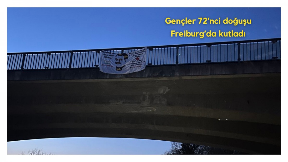 FREİBURG – Akşam saatlerinde bir araya gelen gençler, Önder Öcalan’ın doğum günü vesilesiyle Freiburg kent merkezindeki bir üst geçide pankart astı.