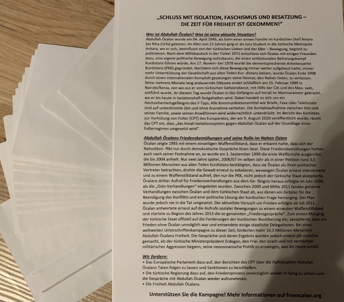Yanı sıra kent içerisinde ise çok sayıda binanın posta kutusuna Önder Öcalan’a uygulanan tecrit ve sistematik işkence politikası hakkında bilgilendirmenin olduğu bildiriler bırakıldı.