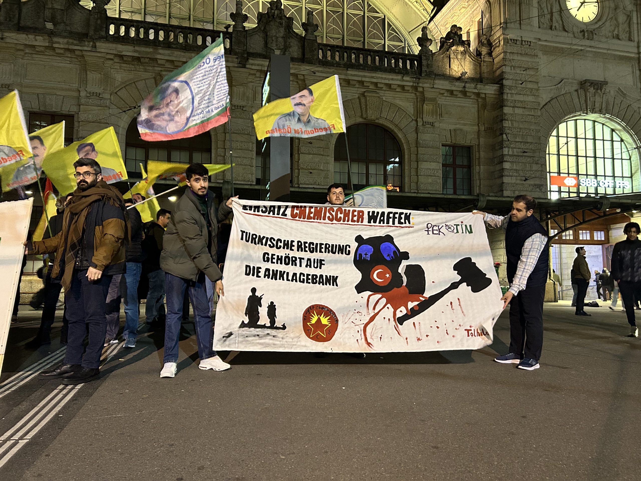 BASEL – İsviçre’nin Basel kentinde Tevgera Ciwanên Şoreşger (TCŞ) ve Jinên Ciwan ên Têkoşer (TekoJIN) üyesi gençler Önder APO’nun fiziki özgürlüğünü sağlamak ve on binlerce insanın yaşamını yitirdiği Kurdistan merkezli depremde AKP-MHP faşist rejiminin halkı ölüme terk eden politikalarını protesto etmek amacıyla “Werin Cenga Azadiyê” hamlesi kapsamında eylem gerçekleştirdi.