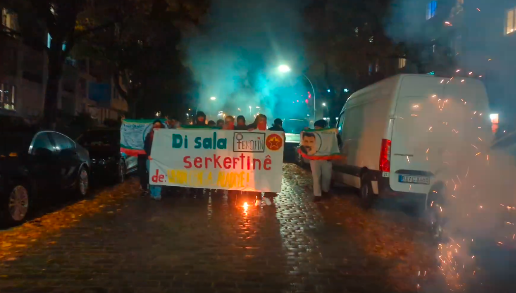 Berlin’in Wedding (Gesundbrunnen) semtinde toplanan gençler, “Di sala Serkeftine de Weren Cenga Azadiye” (Zafer Yılında, Özgürlük Mücadelesine Katılın) yazılı pankart ile yürüyüş gerçekleştirdi.
