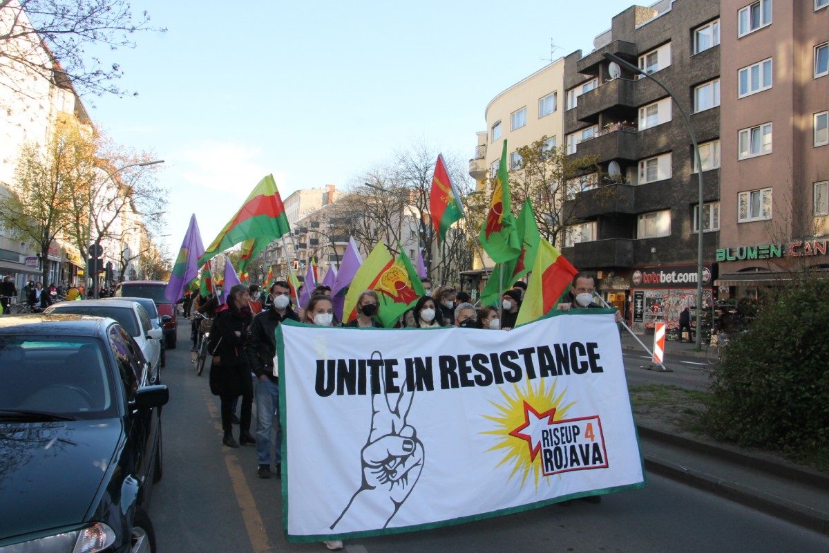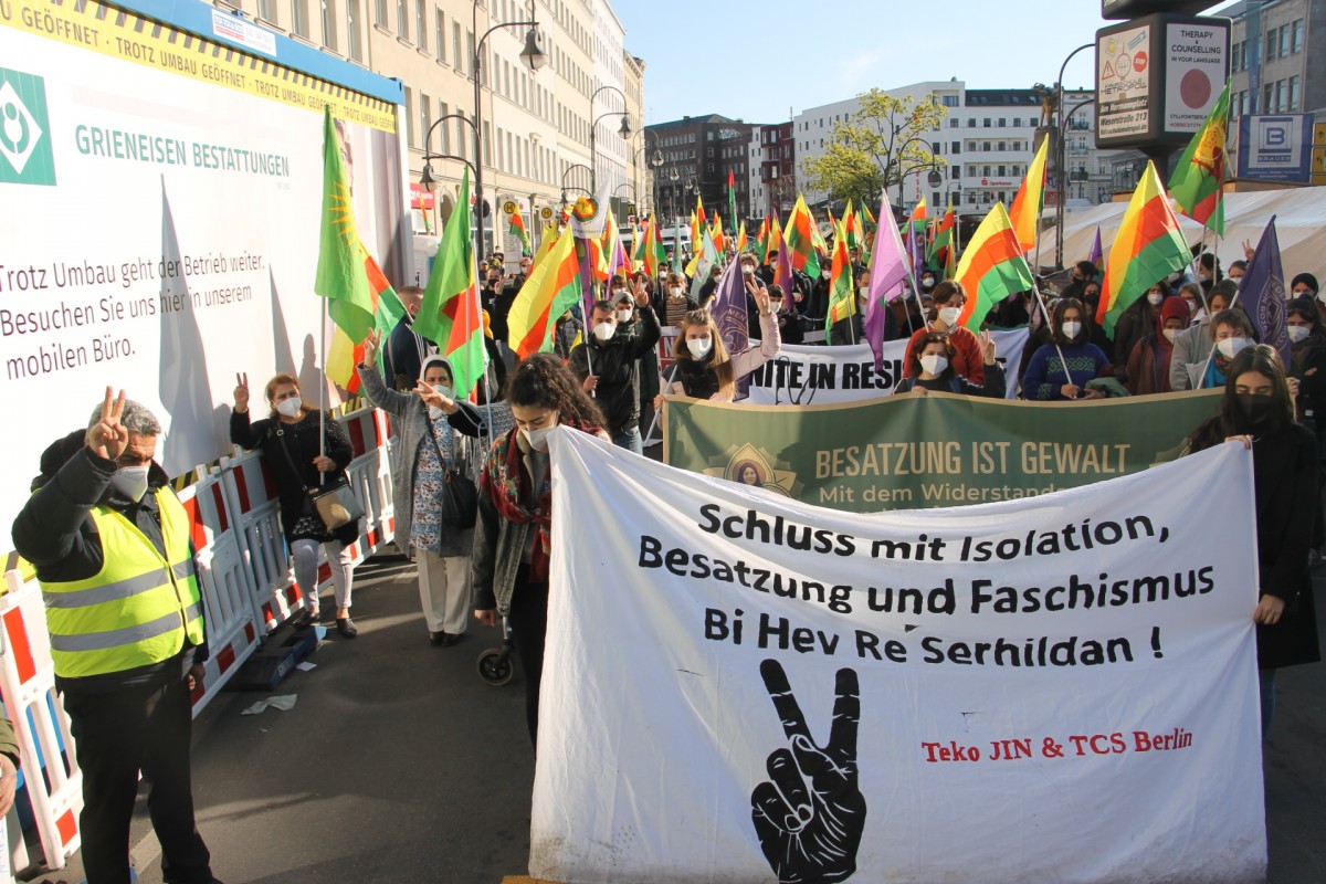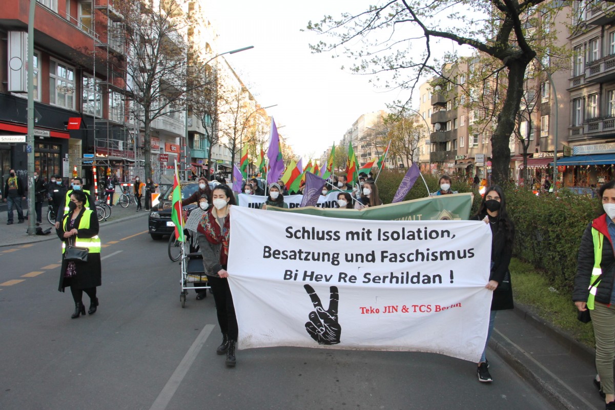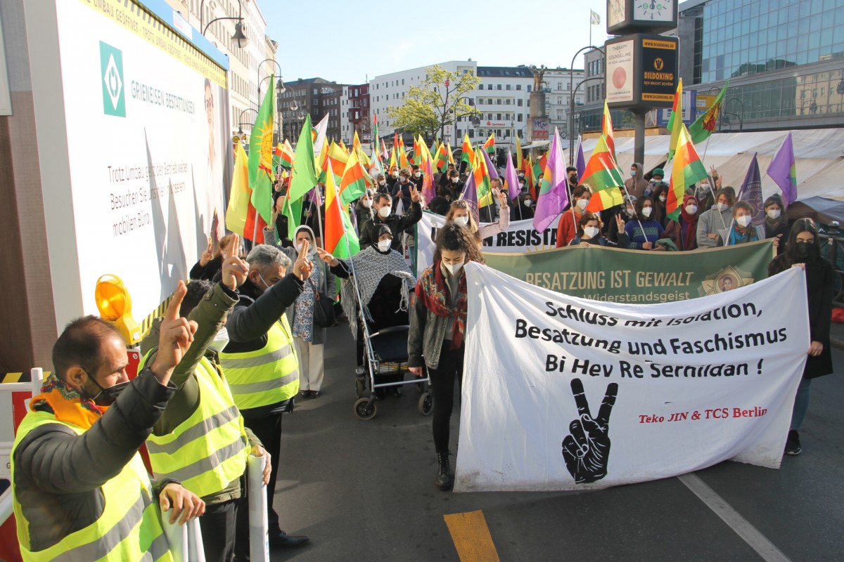 Konuşmaların ardından kitlesel olarak Kottbusser Tor’a kadar yürüyüş gerçekleşti. Eylem sırasında sürekli, “Bijî Berxwedana Gerila” ve “Bijî Serok Apo” sloganları atıldı.