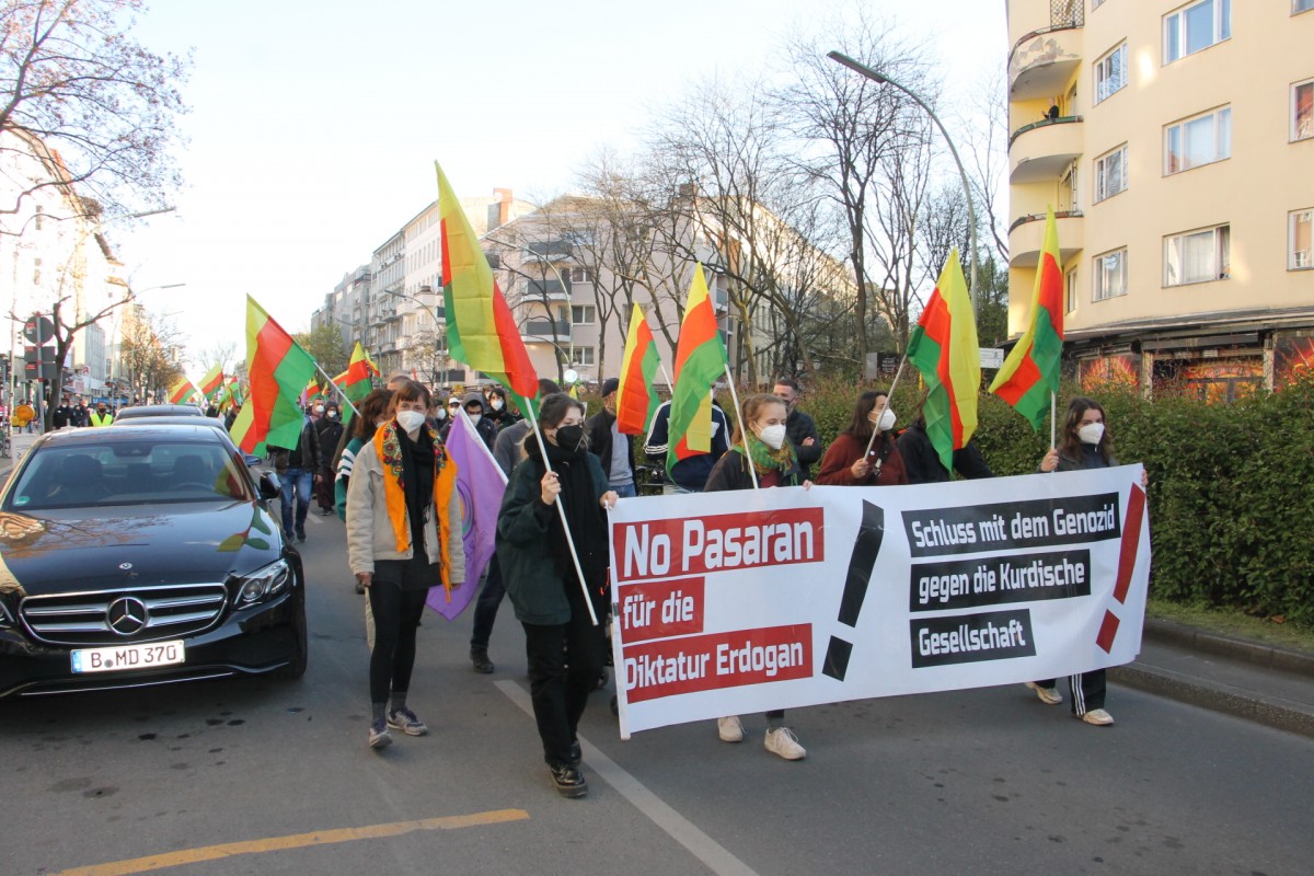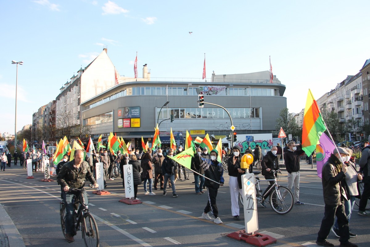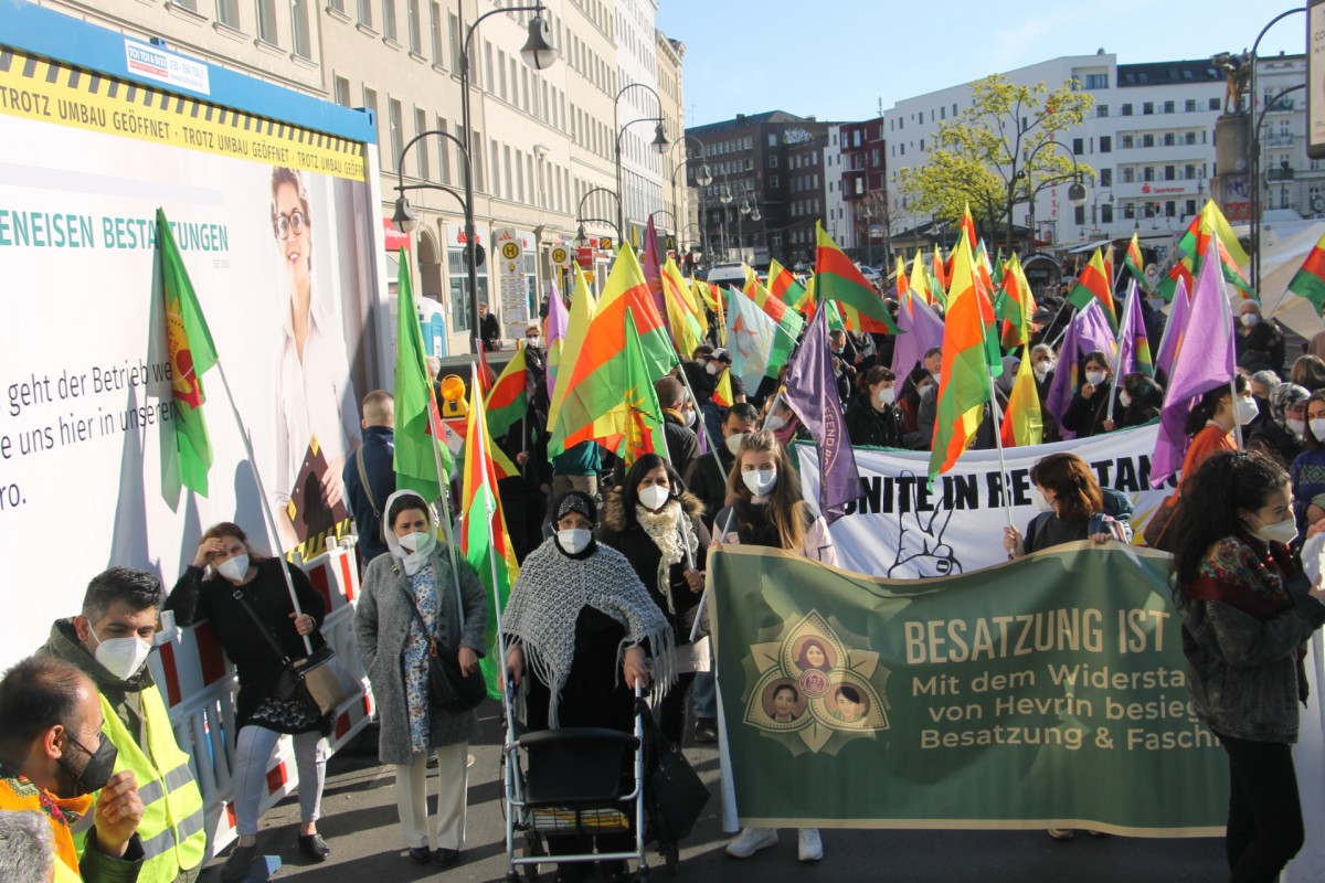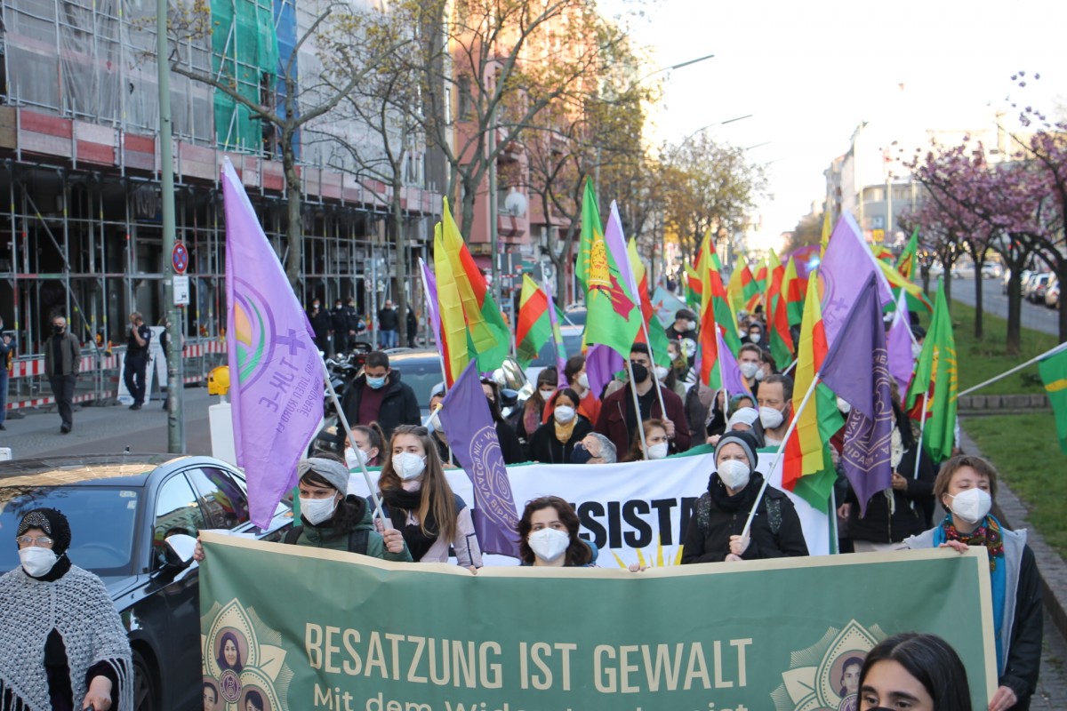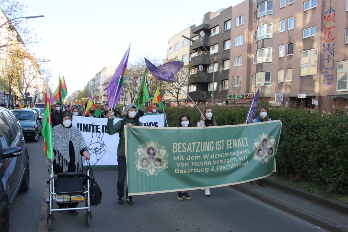 Konuşmaların ardından kitlesel olarak Kottbusser Tor’a kadar yürüyüş gerçekleşti. Eylem sırasında sürekli, “Bijî Berxwedana Gerila” ve “Bijî Serok Apo” sloganları atıldı.
