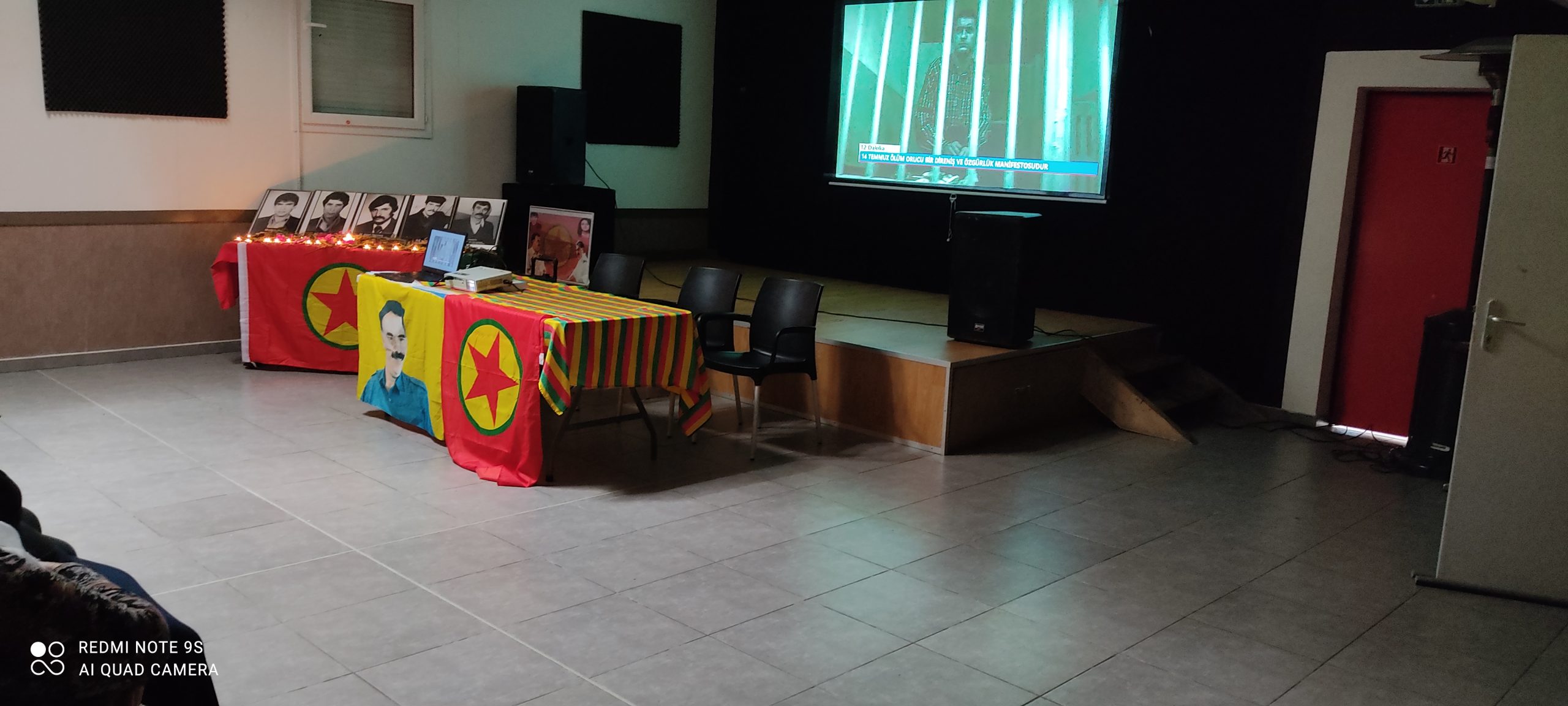 Kürdistan Devrim Şehitleri anısına bir dakikalık saygı duruşu ile başlayan anmada 14 Temmuz direnişine ilişkin sinevizyonlar izlendi. İzlenen sinevizyonların ardından konuşmalar yapıldı.