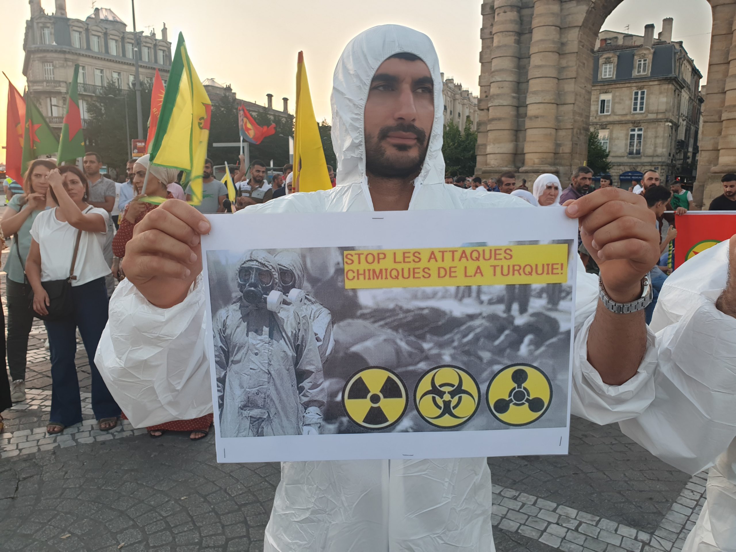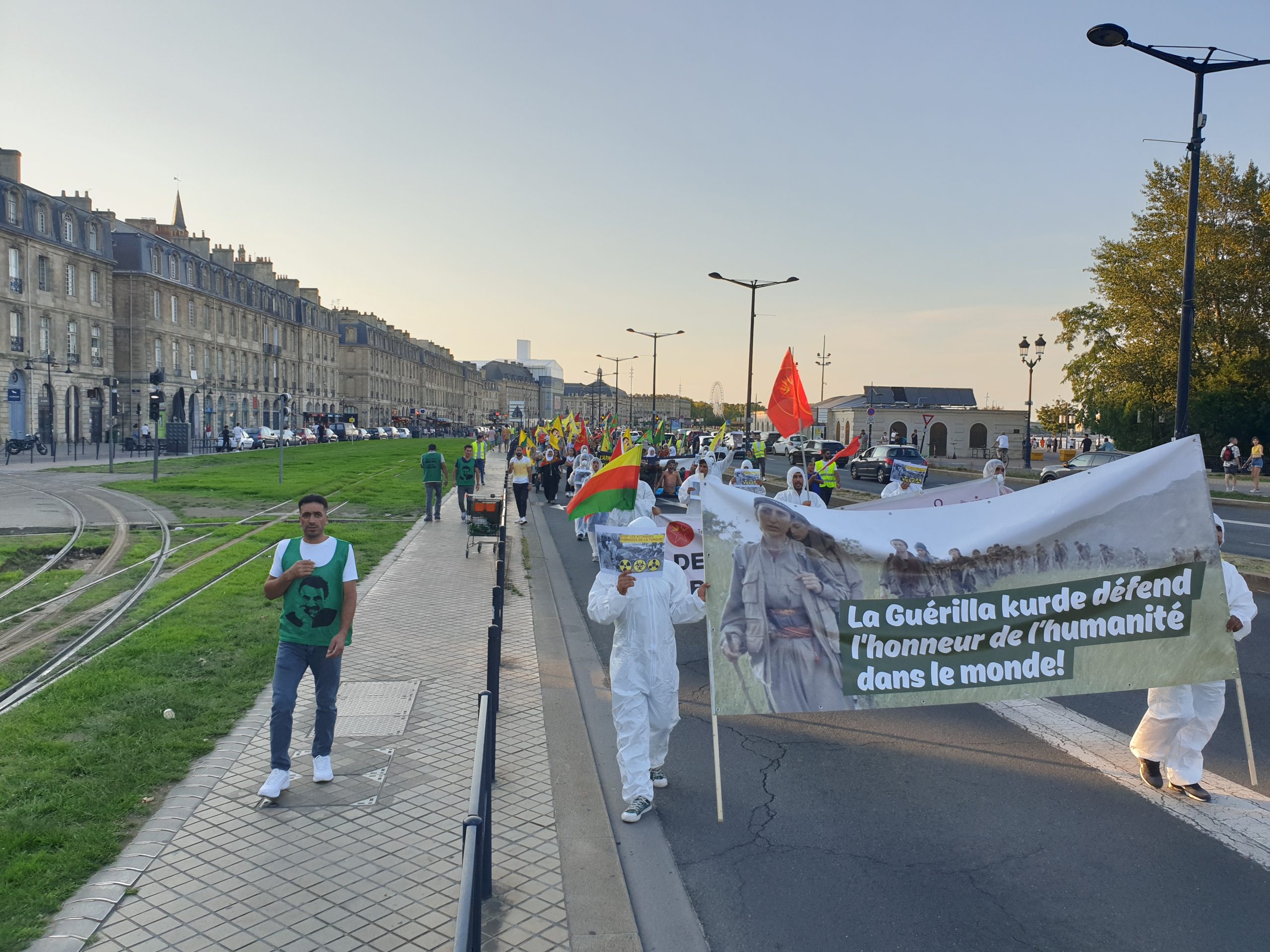 BORDEUX – Fransa’nın Bordeaux kentinde Tevgera Ciwanên Şoreşger (TCŞ) ve Jinên Ciwan ên Tekoşer (TekoJIN) öncülüğünde Türk devletinin Güney Kürdistan’a yönelik işgal saldırıları ve savaşta kimyasal silah kullanımını protesto etmek amacıyla bir yürüyüş düzenlendi.
