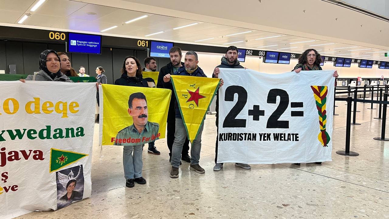CENEVRE – Cenevre Tevgera Ciwanên Şoreşger (TCŞ) üyesi gençler öncülüğünde Kürdistanlılar ve dostları, Rojava’da özellikle Kobanê’ye yönelik kuşatma ve saldırılara dikkat çekmek amacıyla Cenevre havalimanında işgal eylemi gerçekleştirdi. Eylemde, Kobanê’ye uygulanan siyasi ve askeri ablukanın derhal kaldırılması ve insani yardım koridorlarının açılması çağrısı yapıldı.