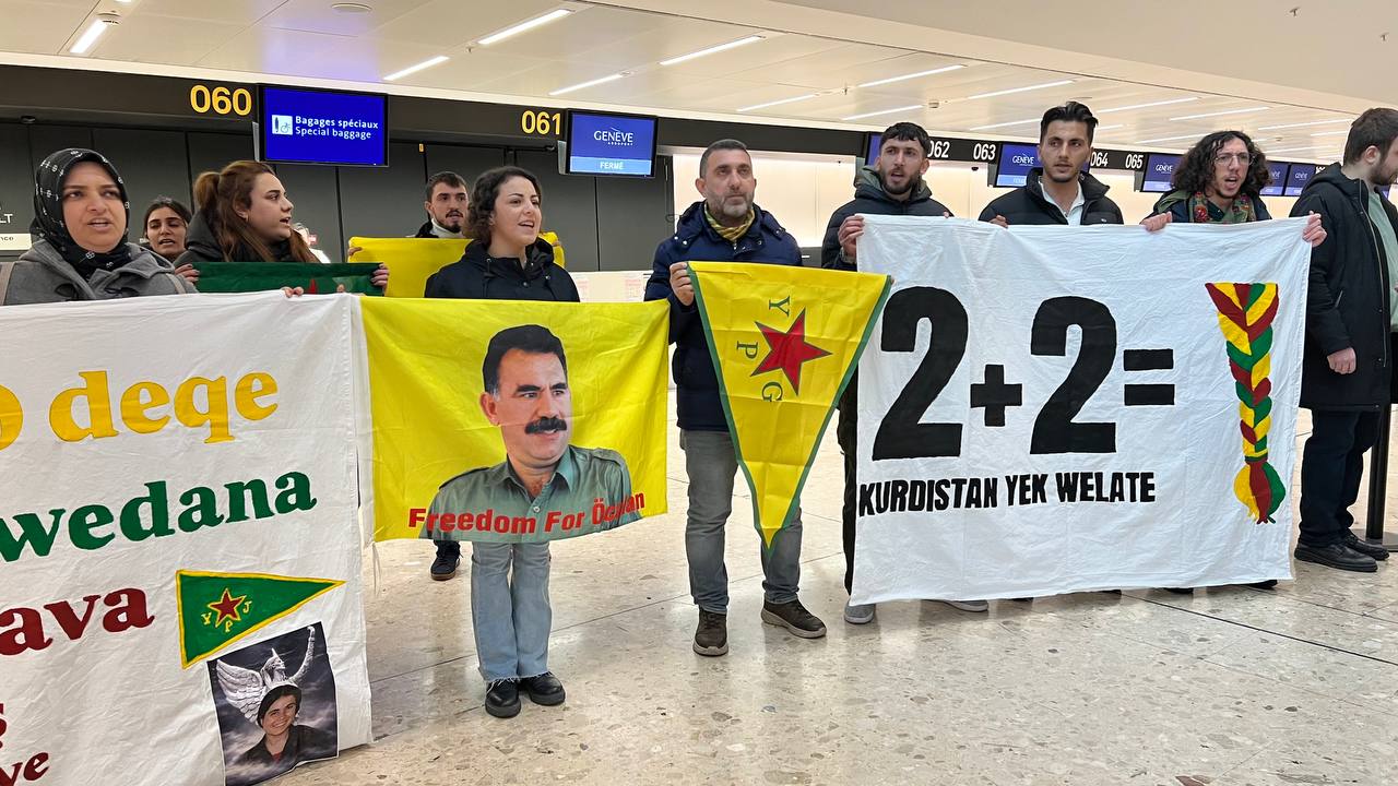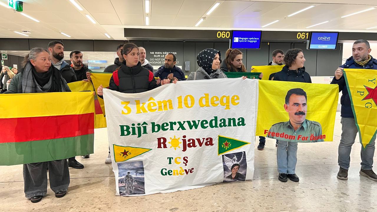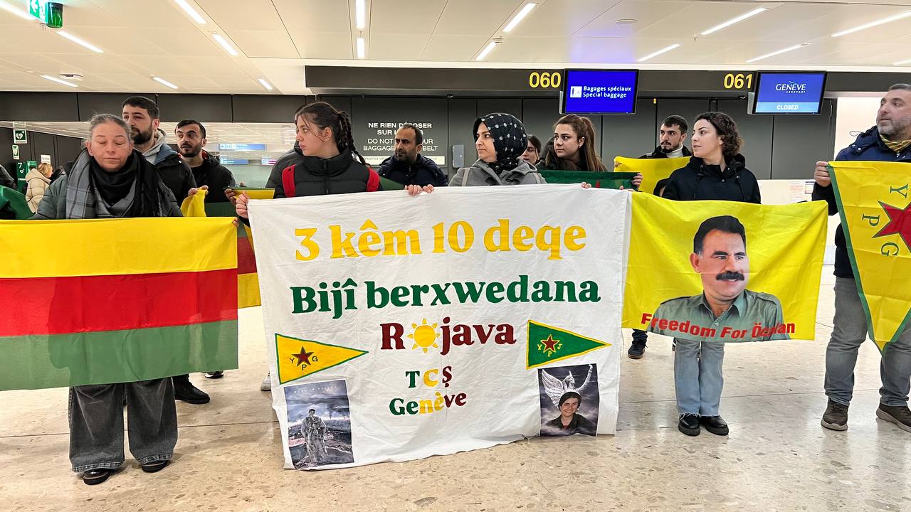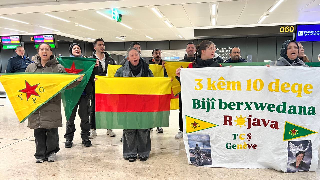 CENEVRE – Cenevre Tevgera Ciwanên Şoreşger (TCŞ) üyesi gençler öncülüğünde Kürdistanlılar ve dostları, Rojava’da özellikle Kobanê’ye yönelik kuşatma ve saldırılara dikkat çekmek amacıyla Cenevre havalimanında işgal eylemi gerçekleştirdi. Eylemde, Kobanê’ye uygulanan siyasi ve askeri ablukanın derhal kaldırılması ve insani yardım koridorlarının açılması çağrısı yapıldı.