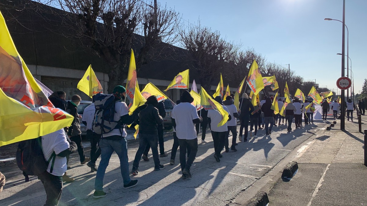 Almanya ve Fransa’nın farklı kentlerinde aynı anda düzenlenen eylemin Fransa kolunda TCŞ, TekoJIN ve enternasyonalist gençler, 3’ncü günün eylemine Fransa’nın Villiers Le Bel banliyösünde tren garı önünden başladı.