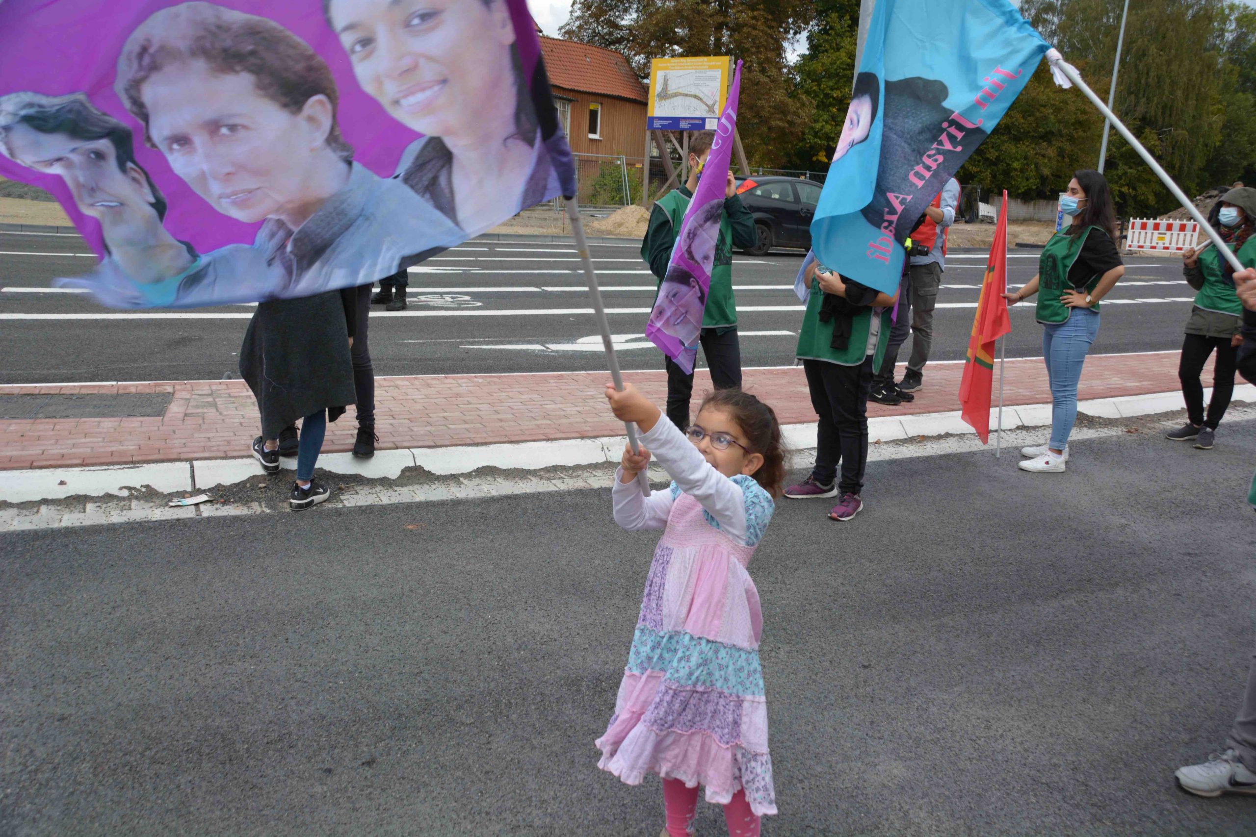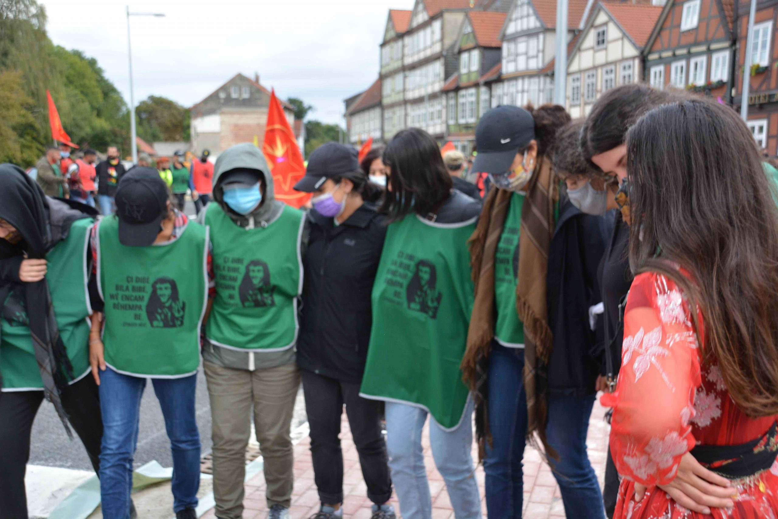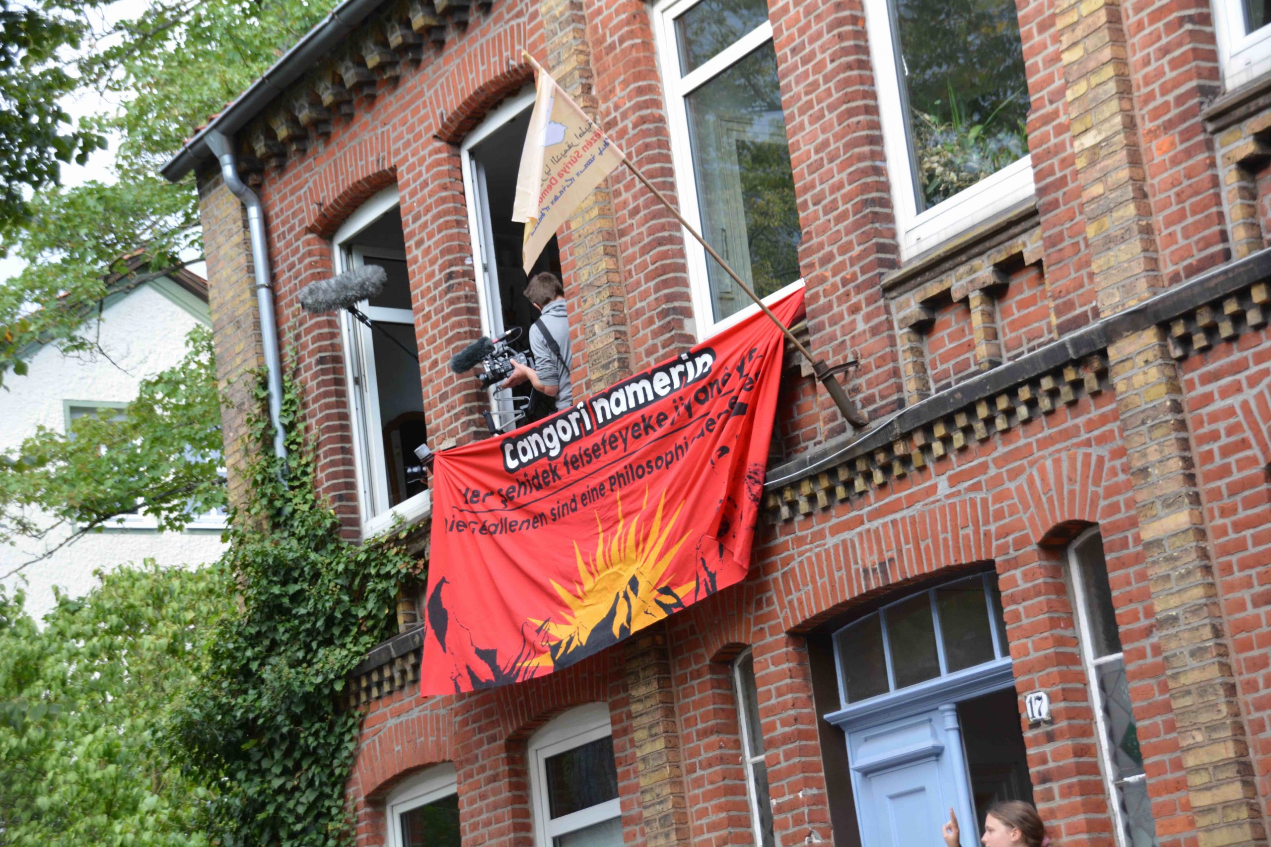CELLE – Lehrte ve Celle arasında toplamda 15 km’lik bir yol yürüyen gençler, Alman polisinin yasaklarına rağmen morallerini bozmadılar. Yürüş esnasında solcu evinde yürüşü destekleme amacıyla antifaşist gençler, camdan 2018 yılında Medya Savunma Alanlarında şehit düşen PKK gerillası Agir Stêrk’in siluetinin olduğu bir pankart astılar.