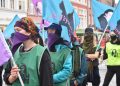 Lüneburg’ta yapılan yürüyüşte eyleme katılan Lüneburg Antifaşist Gençliği ve Feminist 8 Mart Birliği, kendi pankartları ile eyleme destek verdi.