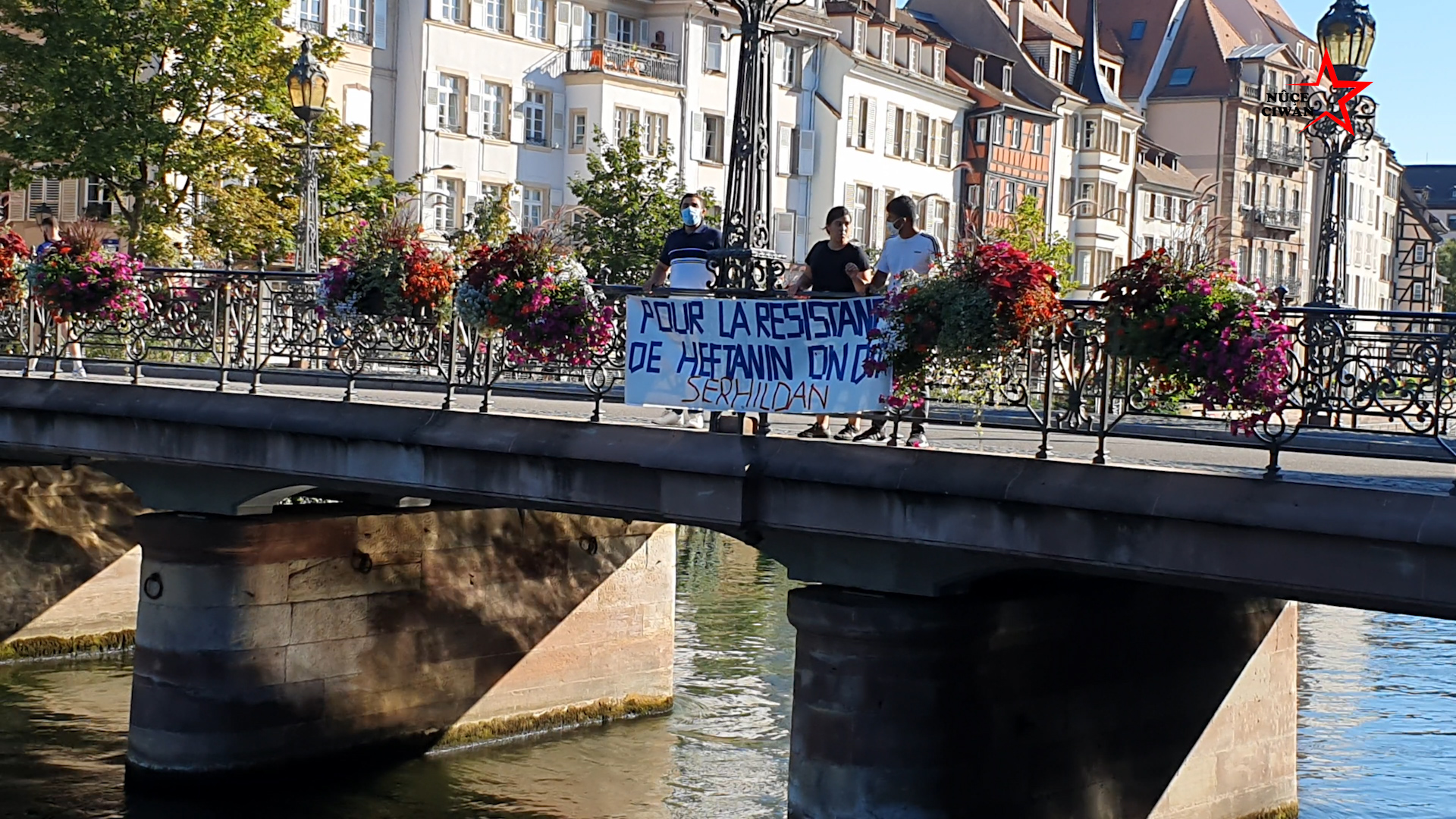Fransa’nın Strasbourg kentinde eylem yapan gençler, Türk işgal ve soykırım saldırılarına karşı ‘Bi Hev Re Serhildan’ dedi. Şehir içinden geçen turistik teknede eylem yapan gençler, aynı zamanda şehir merkezindeki bir köprüye pankart da astı.