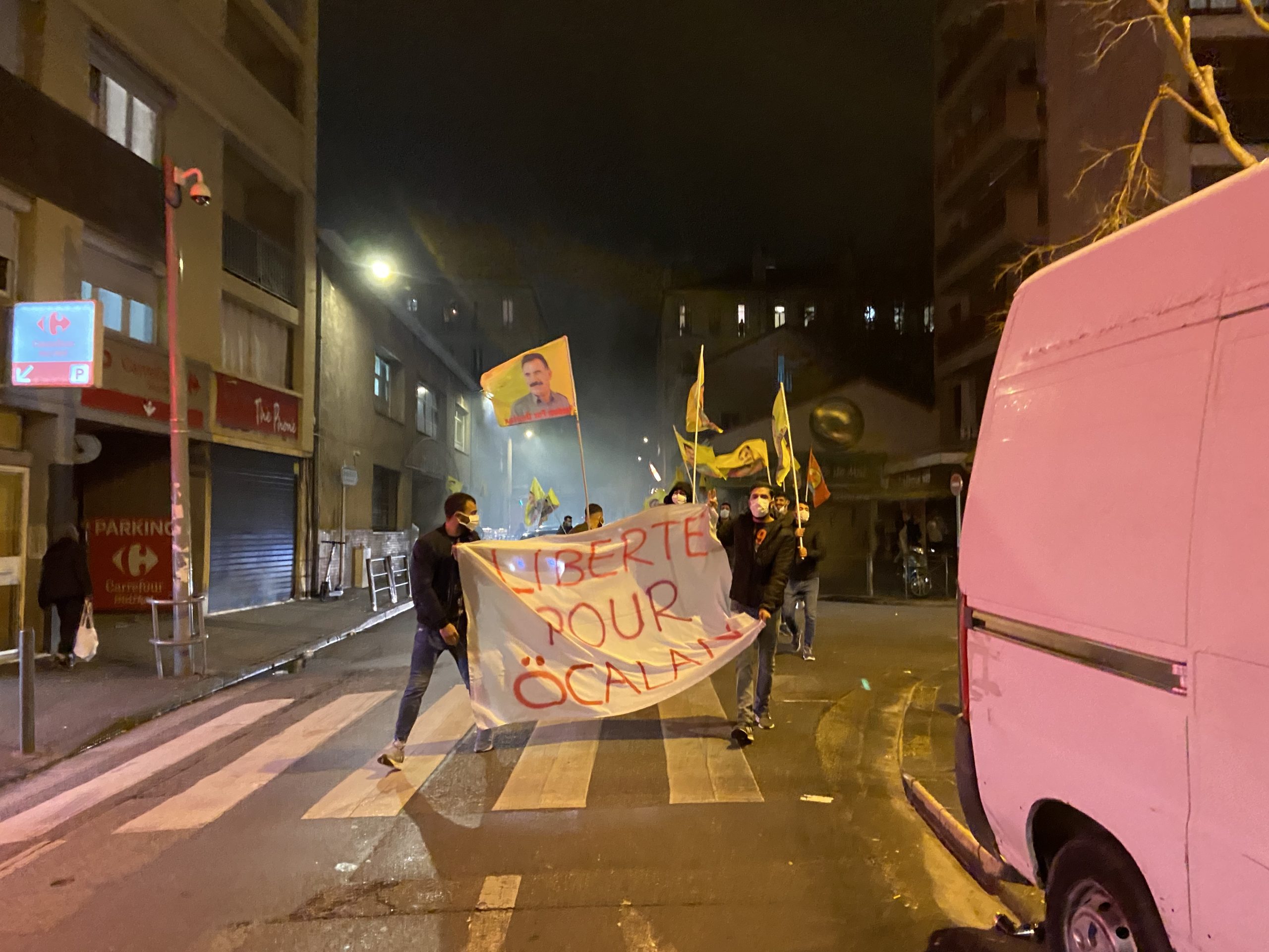 Aktivistler ara sokaklarda sık sık “Bijî Serok APO” , “Gençlik APO’nun fedaisidir” ve “Liberte pour Öcalan” sloganları dahilinde ellerinde meşalelerle yürüyüşlerine devam ettiler.