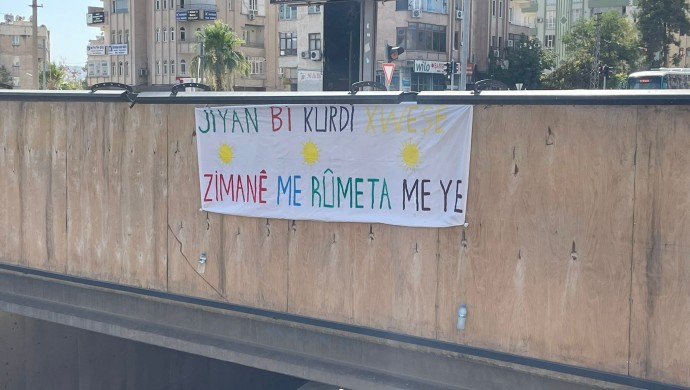 Gençler, Kürtçe’ye dönük saldırılara pankartla tepki gösterdi