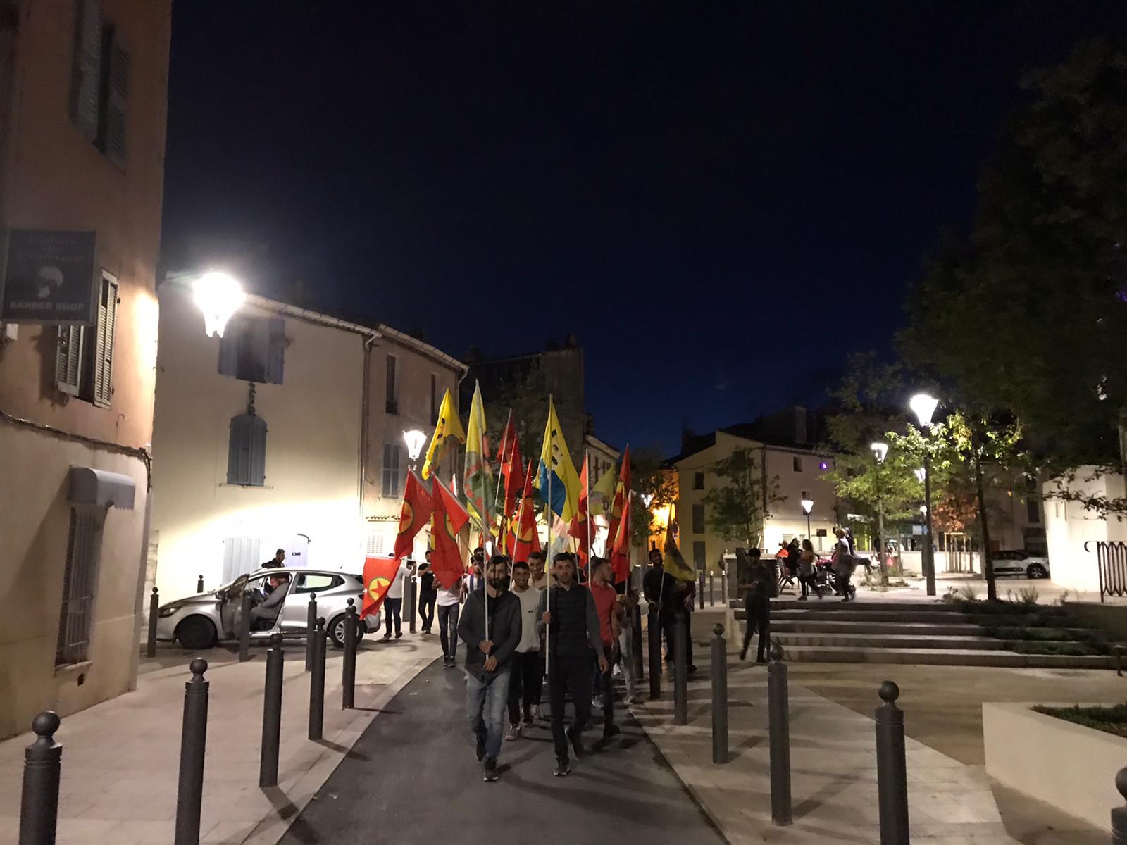 MARİGNANE – Akşam saatlerinde ‘Werin Cenga Azadiyê’ hamlesi kapsamında bir araya gelen gençler tarafından Türk devletinin işgal saldırıları, Konya’da AKP-MHP rejiminin desteğiyle Kürt bir aileye dönük katliam, Şengal soykırımının yıl dönümü, düzenlenen yürüyüş ile protesto edildi.