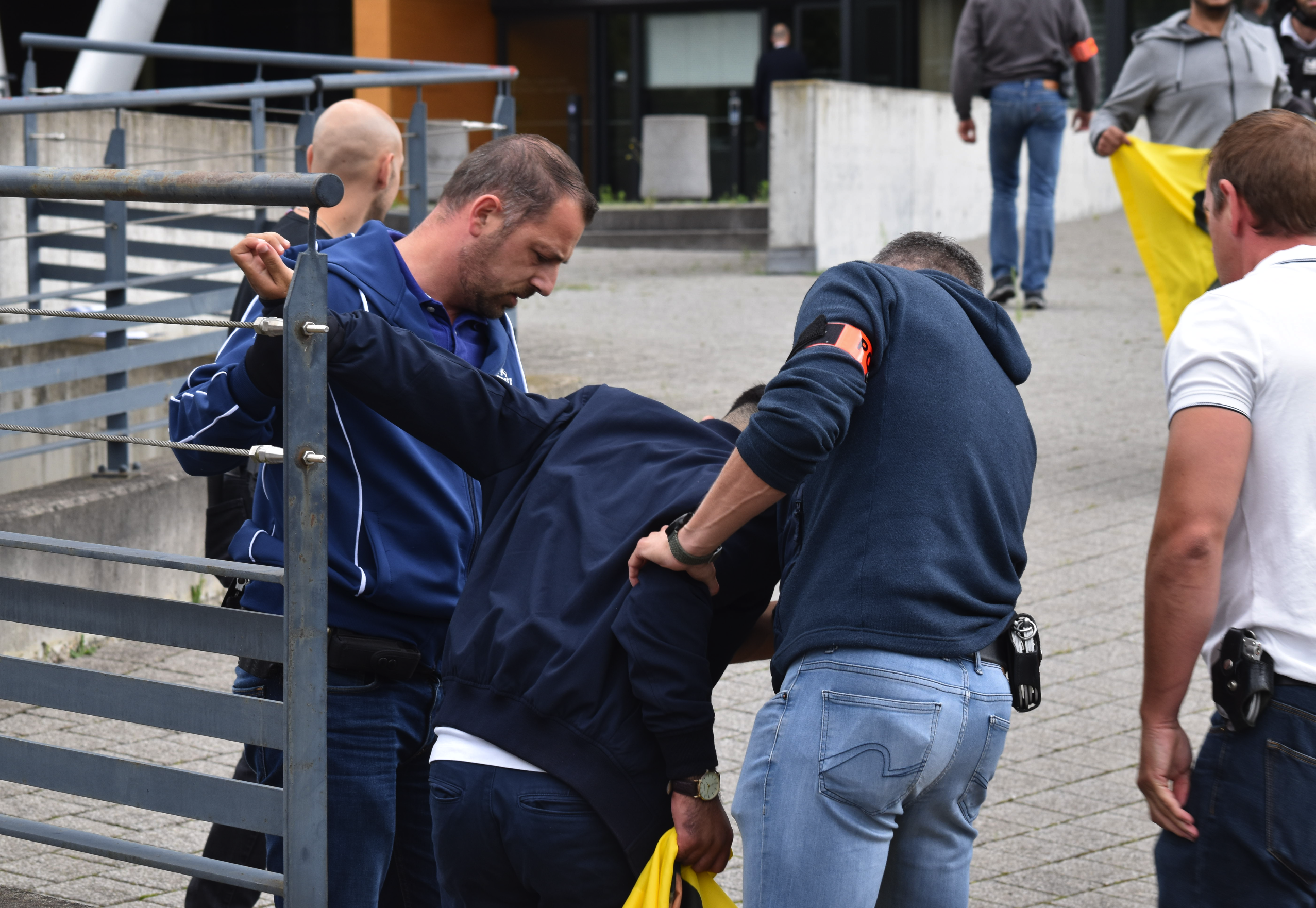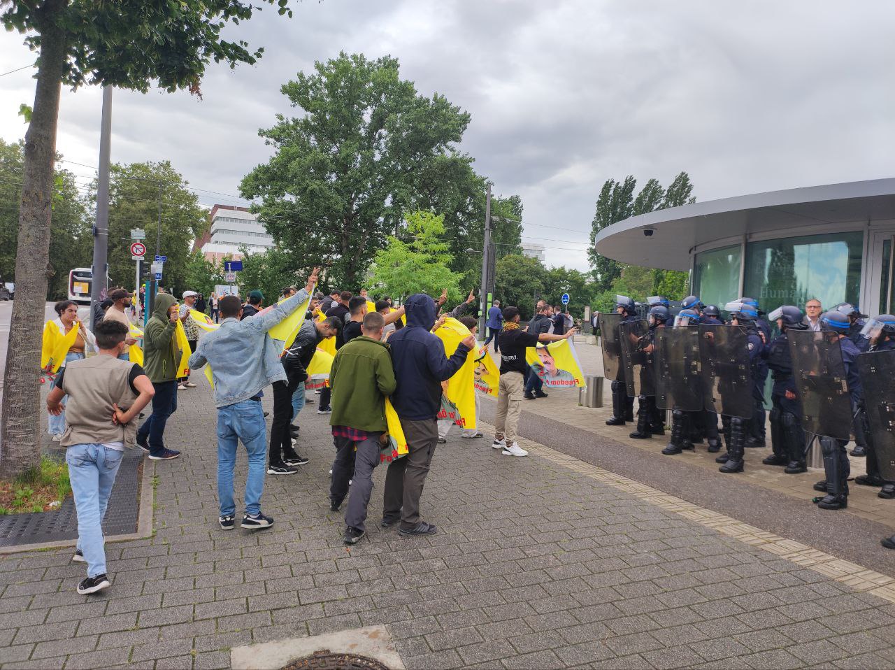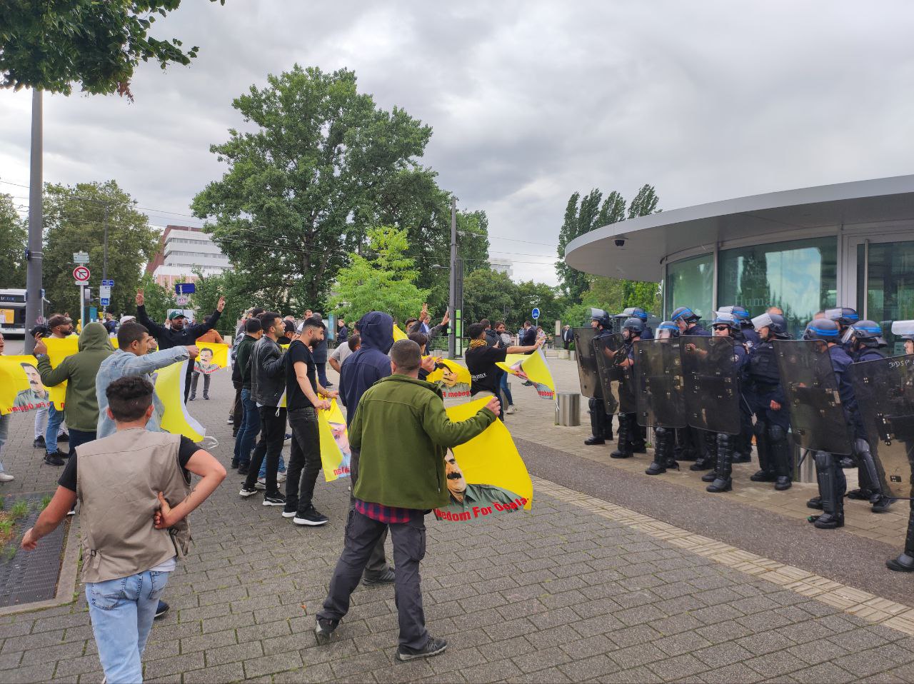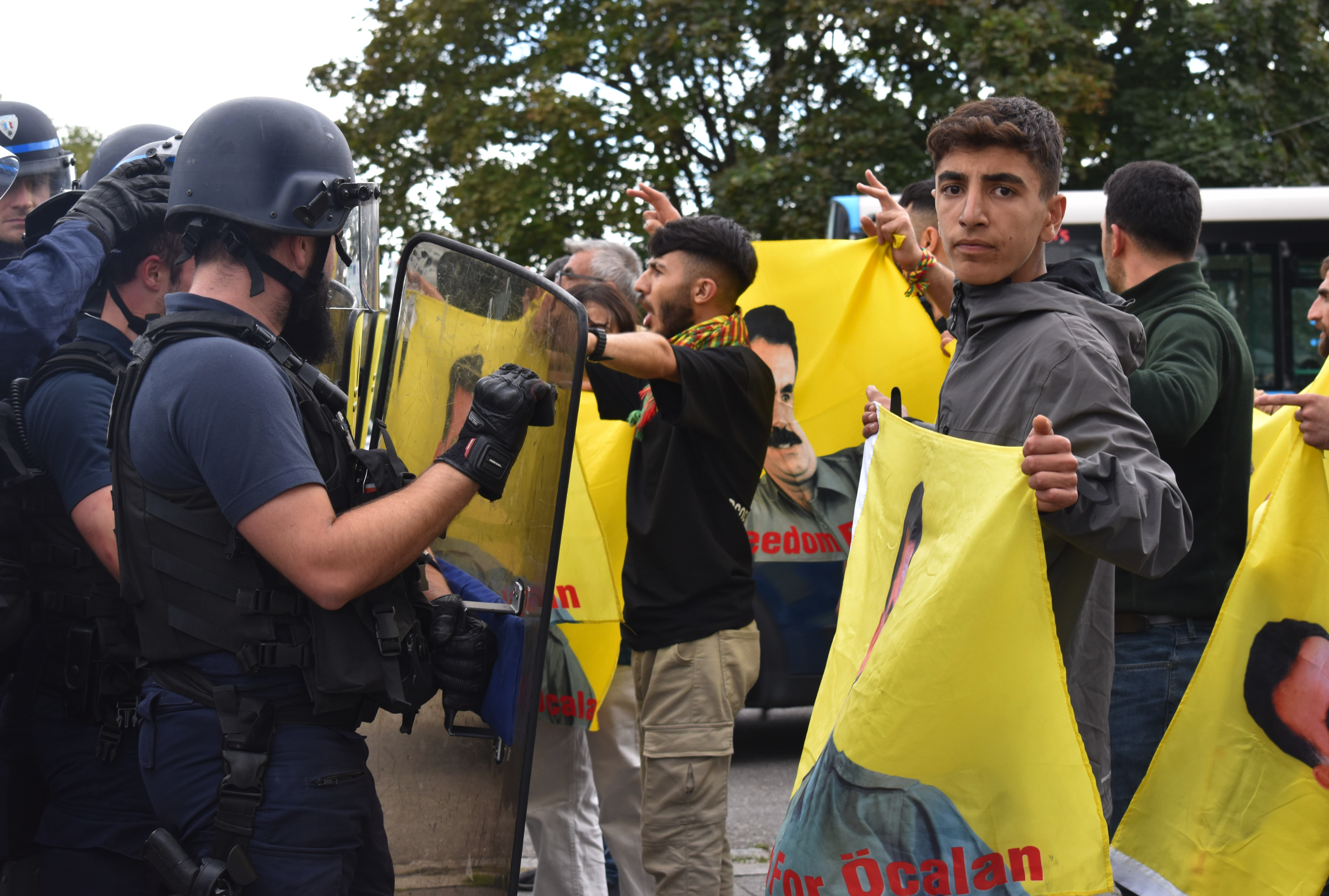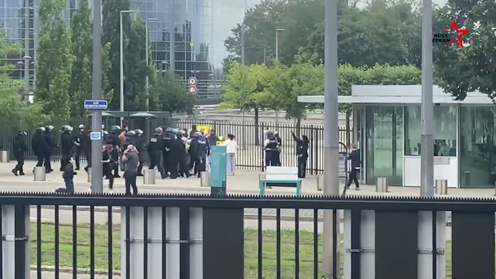 İki grup halinde AİHM binasında devam eden eylemin bir kolu da bina önündeydi. Burada bulunan gençler Önder APO’ya özgürlük sloganları dahilinde polisin saldırılarına karşı direniş içerisinde oldular.