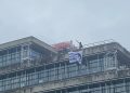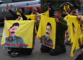 AP binasının içerisinde büyük bir Önder APO pankartı açan enternasyonalist gençler sık sık Önder APO’nun fiziki özgürlüğünü talep eden sloganlar attılar.
