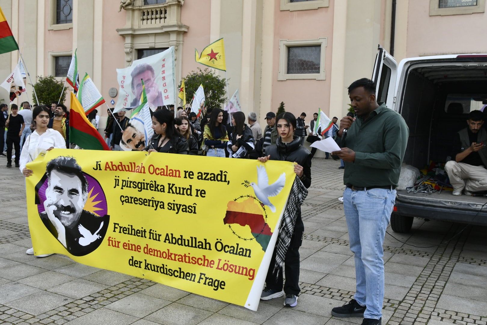 Yürüyüş, Ludwigsburg Hauptbahnhof önünde bir araya gelen eylemcilerin, özgürlük mücadelesinde yaşamını yitirenler anısına bir dakikalık saygı duruşunda bulunmasıyla başladı. Ardından şehir merkezine doğru yürüyüşe geçildi.