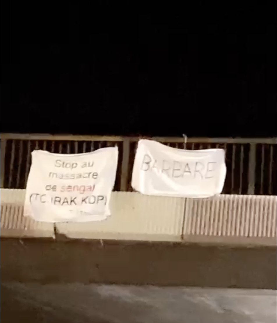 Paris’te gençler, KDP’nin ihanet çizgisini protesto etme amaçlı, KDP ve Bağdat hükümetinin hamisi olan faşist Türk devletinin Paris’te bulunan konsolosluğuna Fransızca “Şengal’deki Saldırılara Son” yazılı bir pankart astılar.
