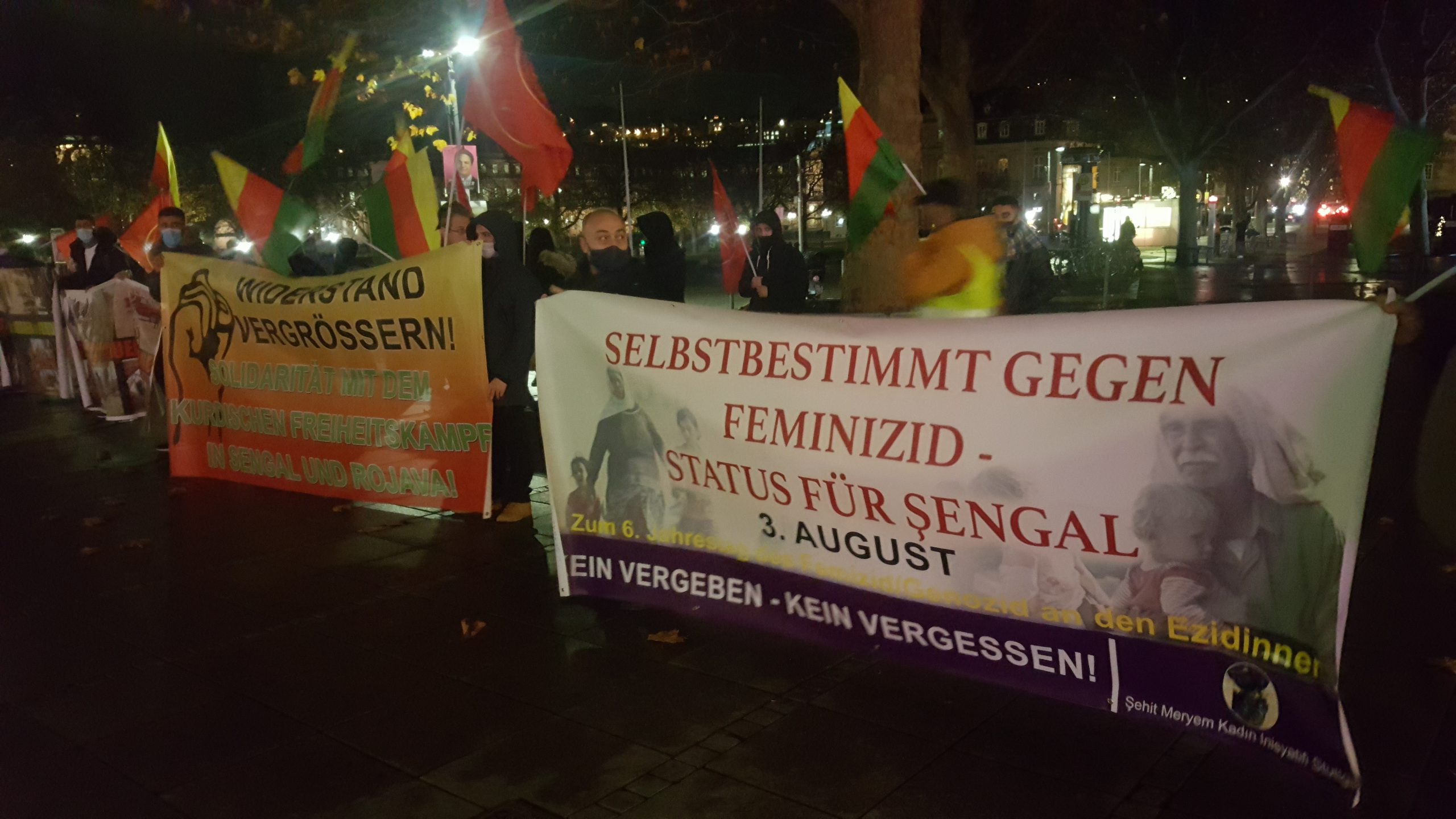 STUTTGART – Stuttgart’ta bir araya gelen TCŞ ve TEKO-JIN aktivisti gençler ve Kürdistanlılar, Bağdat hükümeti ve KDP’nin anlaşması ile Şengal’e 10 bin Irak askerinin sevk edilmesini Kobanê meydanı olarak bilinen alanda toplanarak protesto ettiler.
