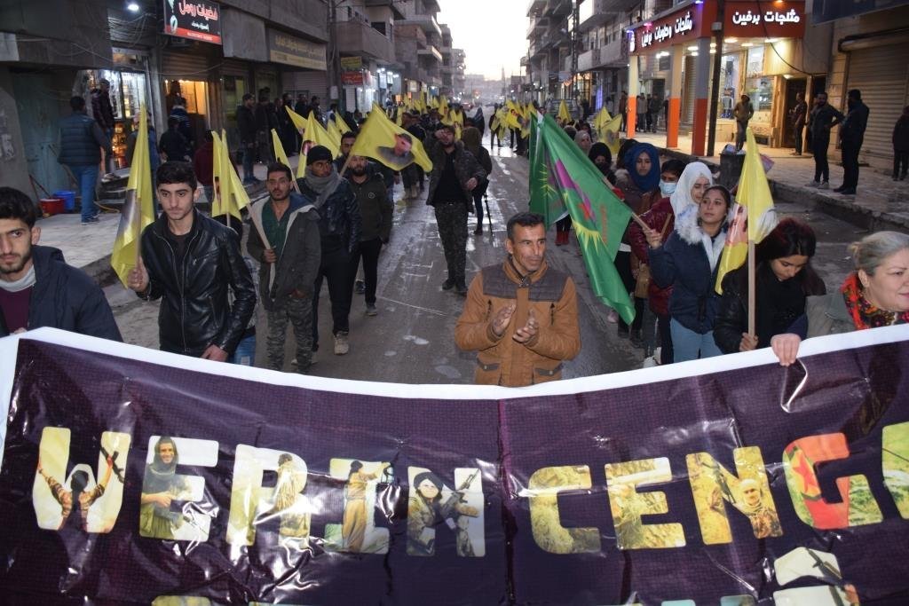 Kentteki Kevok Kavşağı’nda başlayan yürüyüşte işgalci Türk devletinin saldırılarını kınayan sloganlar atıldı.