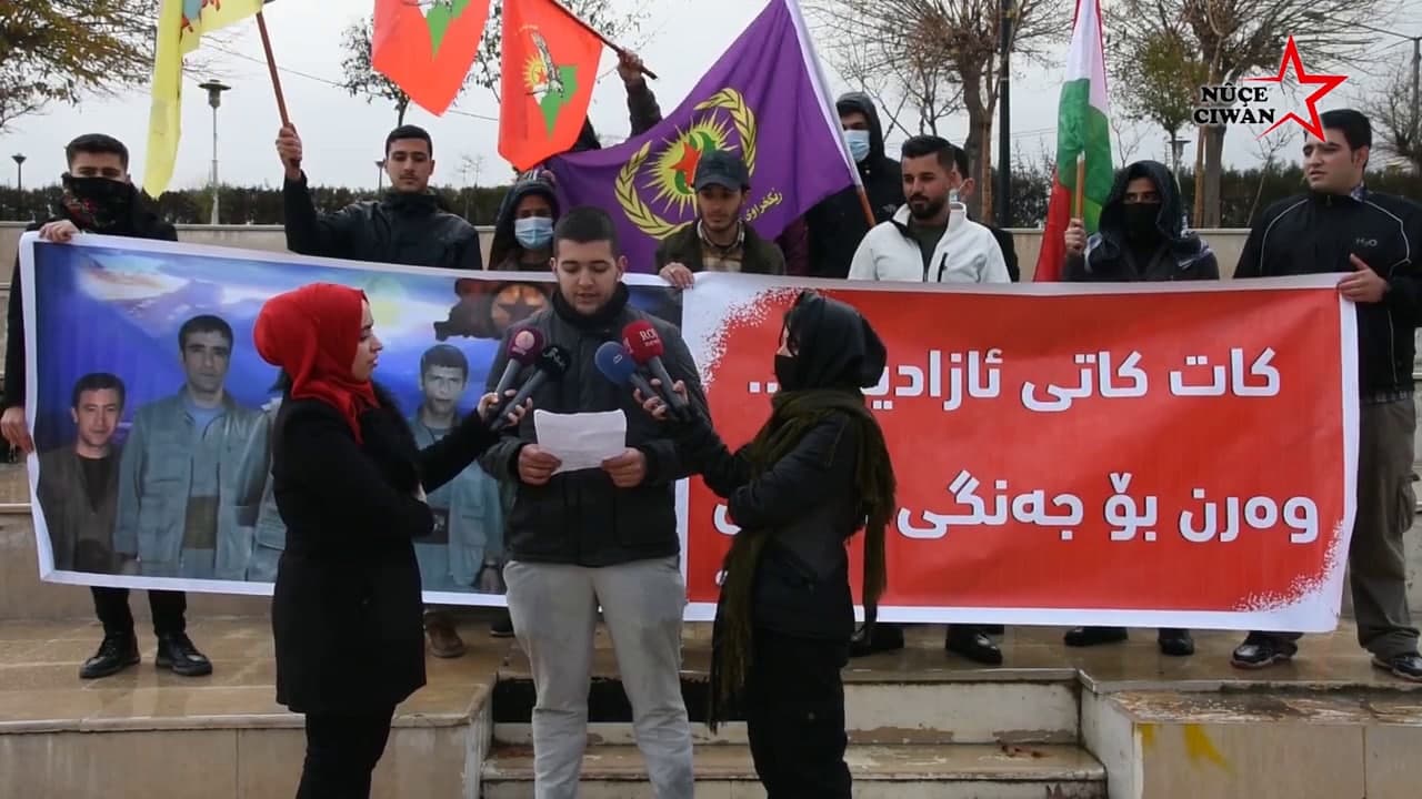 SÜLEYMANİYE – Komeleya Ciwanên Welatparêz ve Jinên Ciwan ên Têkoşer, Türk devletinin işgal saldırılarına ve KDP’nin Türk devletiyle işbirliği içinde olmasına karşı Süleymaniye’de bulunan Azadi Parkı’nda açıklama yaptı. Açıklamaya çok sayıda genç katıldı.