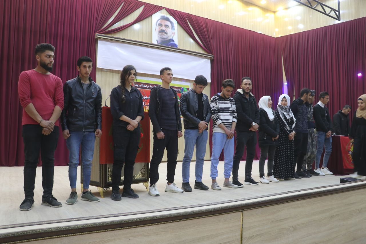 Tabqa Tevgera Ciwanên Şoreşger ve Yekîtiya Jinên Ciwan üyeleri “Gençlik Önder Apo’nun Fedaisidir” şiarıyla yıllık olağan toplantısını Tabqa’daki Şehit Mesne Abdulkerim Kültür ve Sanat Salonu’nda gerçekleştirdi.