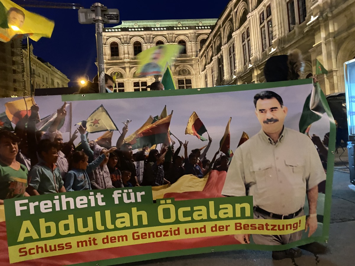 VİYANA – Devrimci Gençlik Hareketi (TCŞ) ve Mücadeleci Genç Kadın Hareketi (TekoJIN) öncülüğünde düzenlenen eylemde Halklar Önderi Abdullah Öcalan’a uygulanan ağırlaştırılmış tecrit protesto edilirken, Önder Öcalan’a fiziki özgürlük istendi.