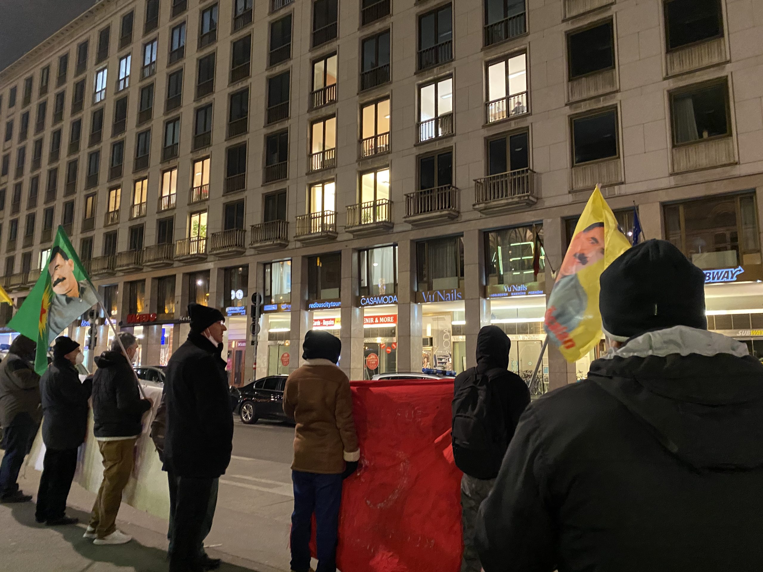 Akşam saatlerinde TCŞ (Tevgera Ciwanên Şoreşger) ve TekoJIN (Jinen Ciwan ên Tekoşer) aktivistlerinin yaptığı çağrı ile gençler, Hollanda Başkonsolosluğu önünde bir araya geldi.