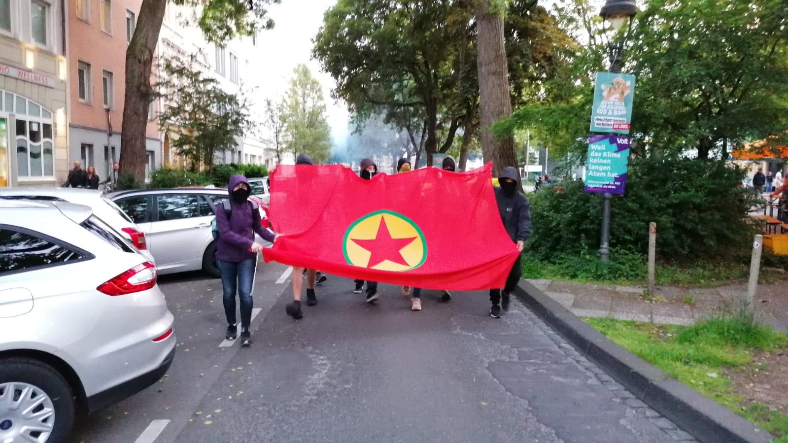 BONN – Almanya’nın Bonn şehrinde yaşayan Kürt gençleri ve enternasyonalistler, 5 metrelik bir PKK bayrağıyla faşistlerin yoğun yaşadığı Altstadt mahallesinde sivil itaatsizlik eylemi yaptı. Gençler, faşist Türk devletinin zindanlarda tecride karşı eylemlerine devam eden tutsaklara ve Kürt analarına uyguladığı baskıları protesto etti.