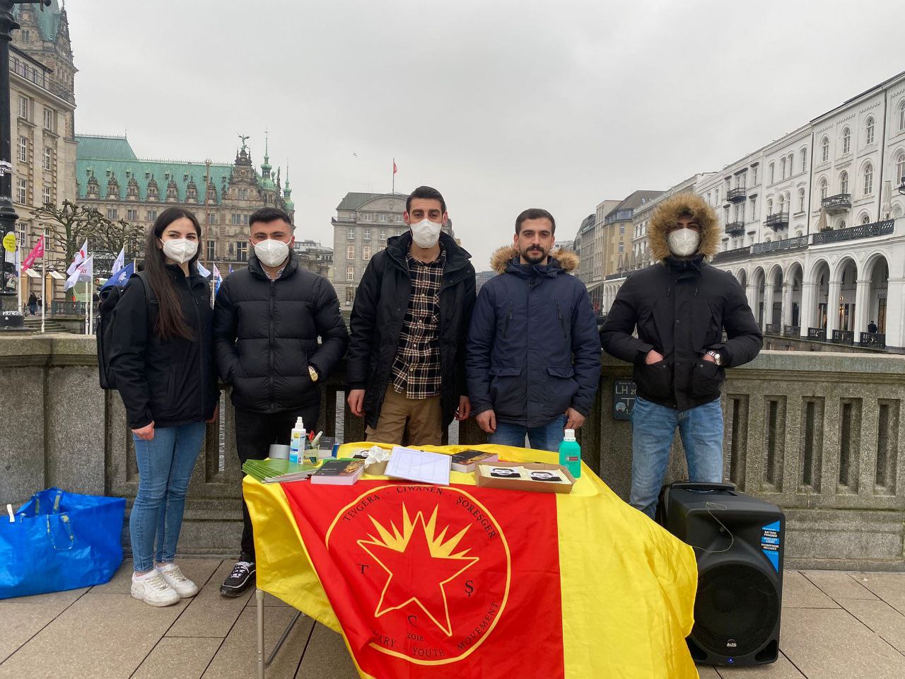 “Werin Cenga Azadiyê” hamlesi kapsamında Hamburg’un Jungfernstieg Meydanı’nda bir araya gelen gençler saat 13.00’da standlarını açtılar. Standa yoğun ilgi gösteren halka PKK’ye ilişikin bildiriler ve Önder Öcalan’ın kitapları da tanıtılıyor. Şu anda gençler öncülüğünde sürdürülen stand eylemi yüzlerce imzanın toplanması ile devam ediyor.