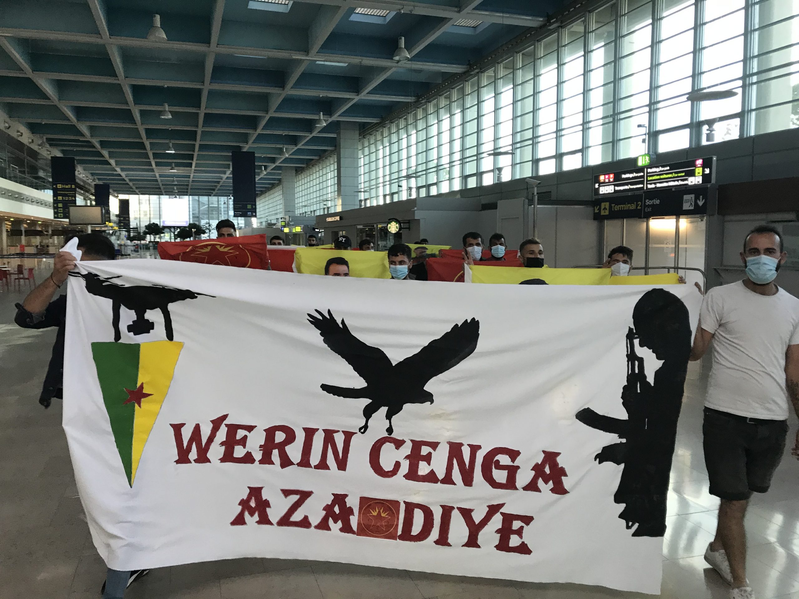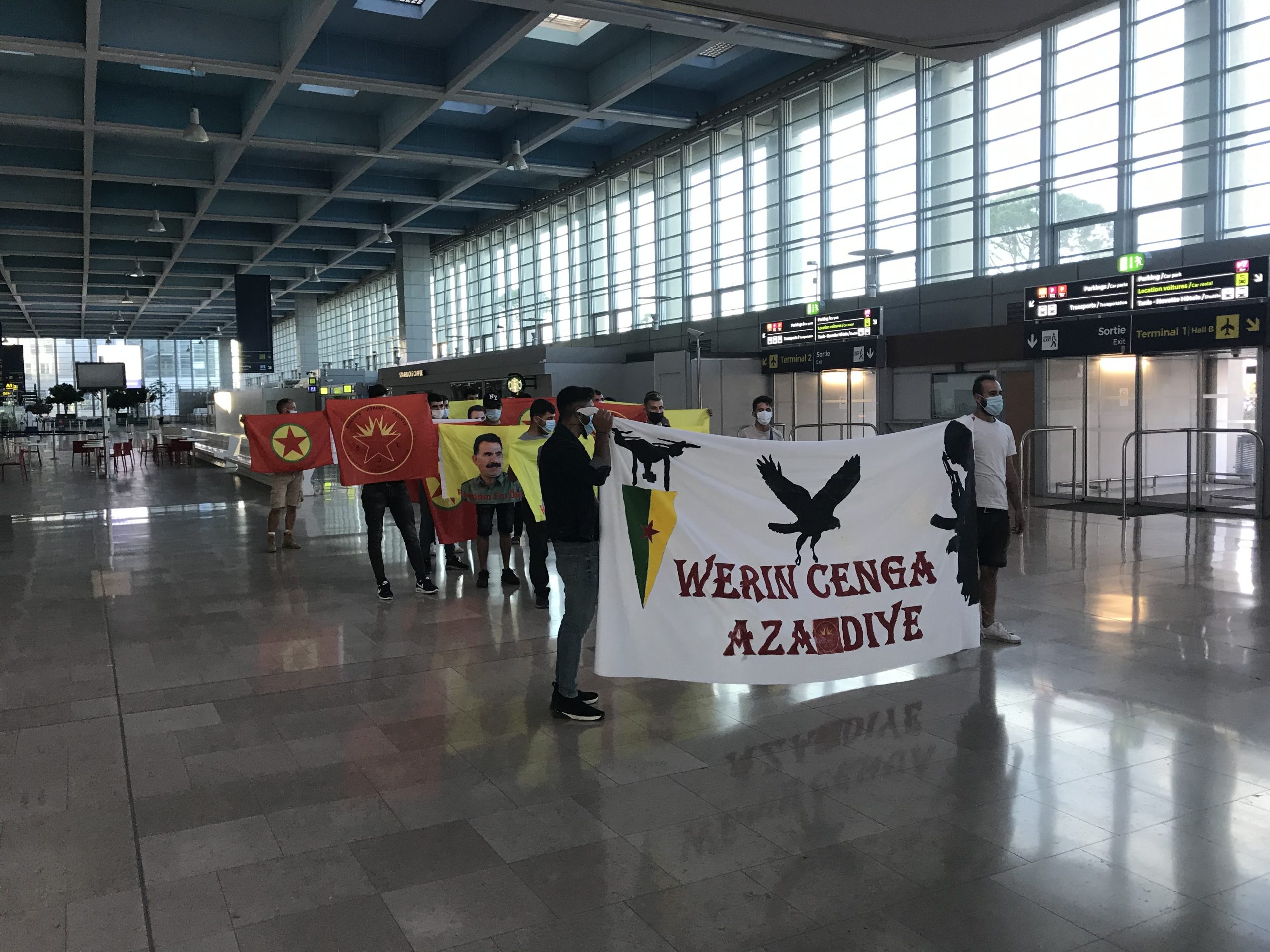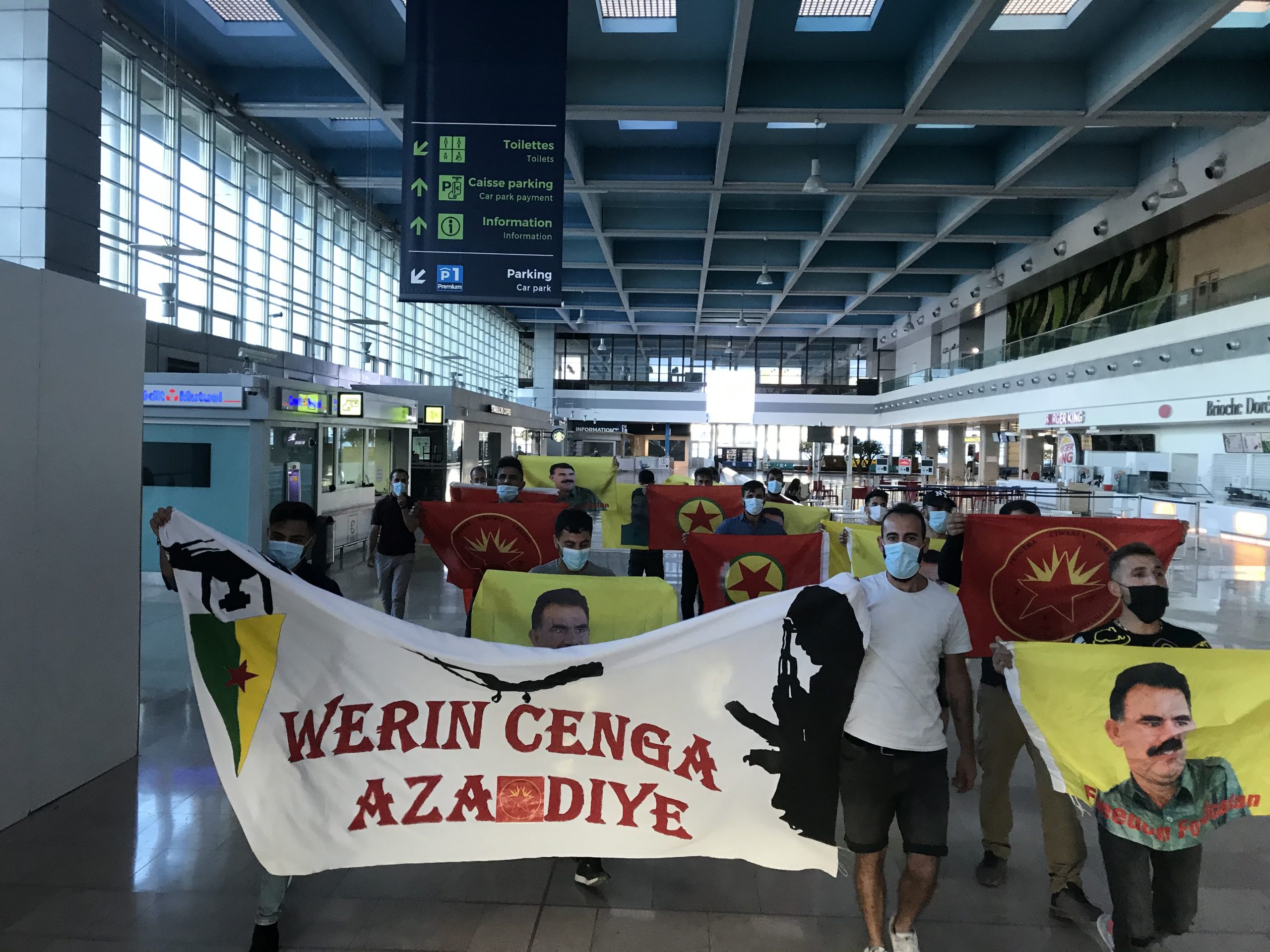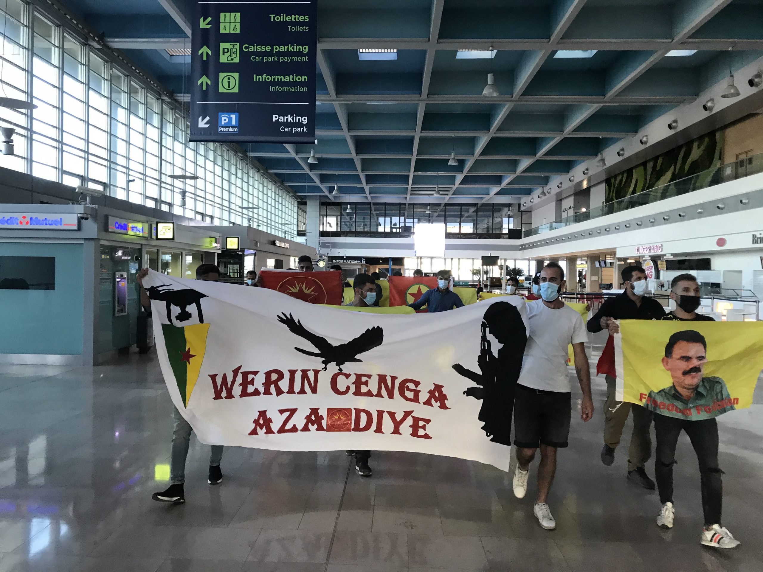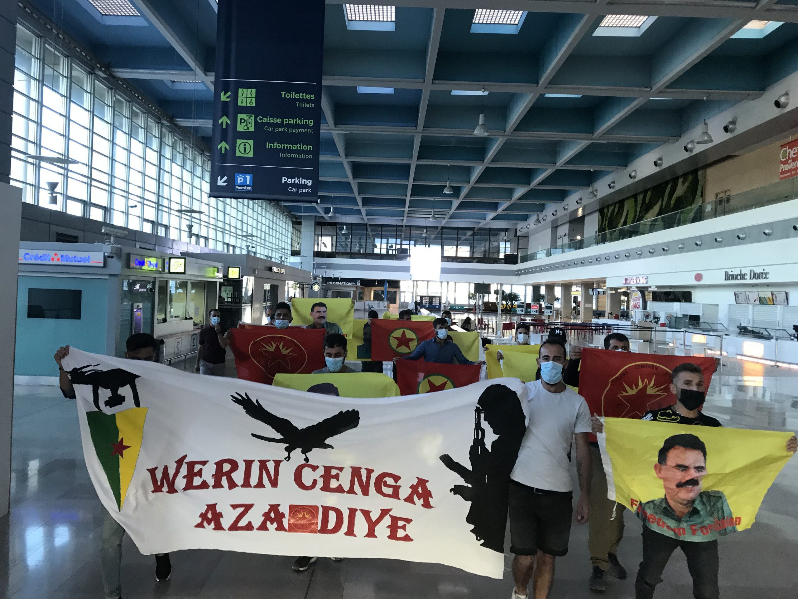 MARSİLYA – Akşam saatlerinde bir araya gelen gençler “PKK”, “Önder Öcalan”, “TCŞ” bayrakları ve üzerinde “Werin Cenga Azadiyê” yazan pankart ile Marsilya Provence Havalimanı’nda bir yürüyüş gerçekleştirdiler.