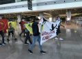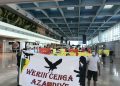 Yaklaşık bir saat süren eylem gençlerin havalimanı önünde attığı sloganlarla sona erdi.
