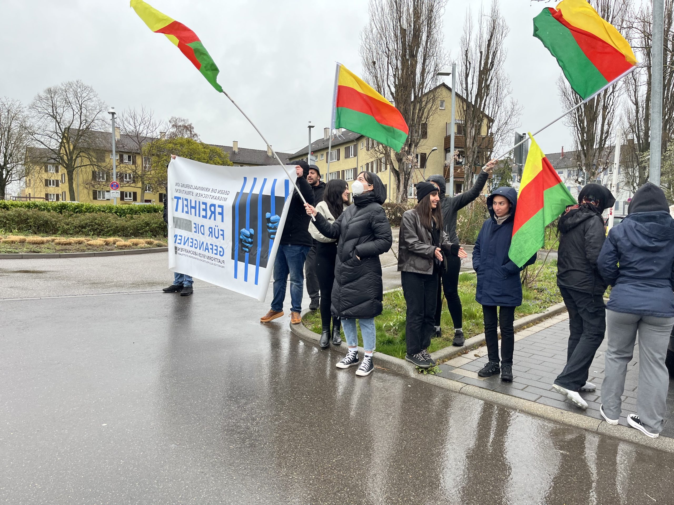 STUTTGART – Almanya’nın Stuttgart kentinde Stammheim bölgesinde tutuklu bulunan Merdan K.’ya destek amaçlı TekoJIN (Jinên Ciwan ên Têkoşer) aktivisti genç kadınlar öncülüğünde miting gerçekleştirildi.