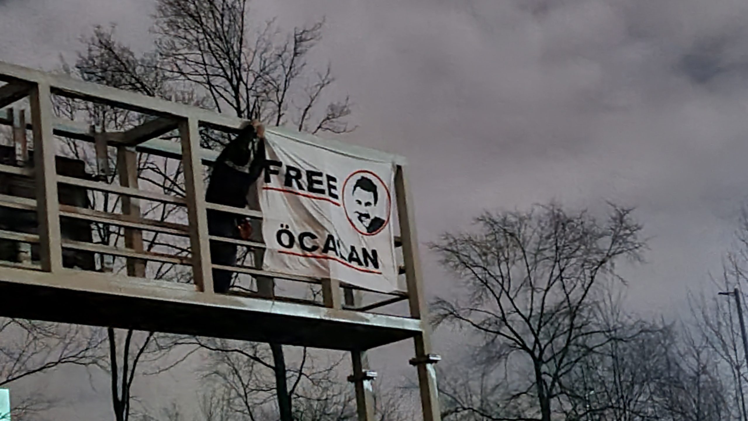 DORTMUND – Akşam saatlerinde Almanya’nın Dortmund kentinde bir araya gelen TCŞ ve TekoJIN aktivisiti gençler bir köprü üzerine “Free Öcalan (Öcalan’a Özgürlük)” yazan bir pankart astılar.