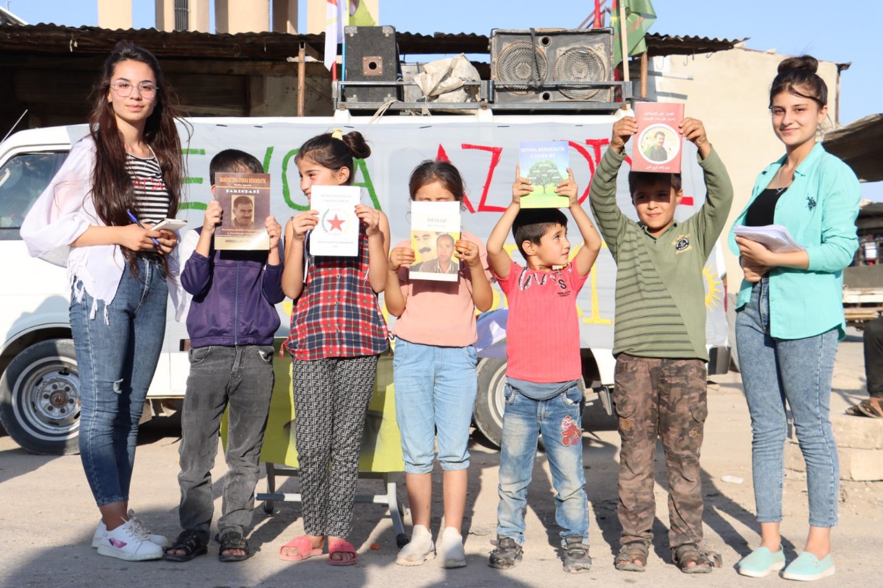 Önder Apo’nun düşünce ve fikirlerini yaymak ve tanımak için Şehba bölgesinde gezici kütüphane etkinliği gerçekleştirildi. Önder Apo’nun, Kurdistan Özgürlük Hareketi’nin direnişini anlatan seminerlerinde verildiği etkinlikte özellikle kadınlar ve gençler Önder Apo’nun kütüphanesini büyük bir moral ve coşkuyla karşılıyor ve ilgi gösteriyor. İşgalci Türk devletinin saldırıları devam etse de genç kadınların ve gençler eylem ve etkinliklerine ara vermeden devam ediyor.