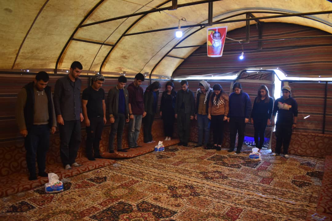 KOBANÊ – Kobanê’de Ciwanên Şoreşger, Yekitîya Jinên Ciwan ve Gençlik Spor Bakanlığı üyeleri işgal saldırılarına karşı Cenga Rojava Direnişinde şehit düşen Şehit Arteş, Şehit Şahin ve Şehit Kawa için açılan taziye çadırını ziyaret ettiler.