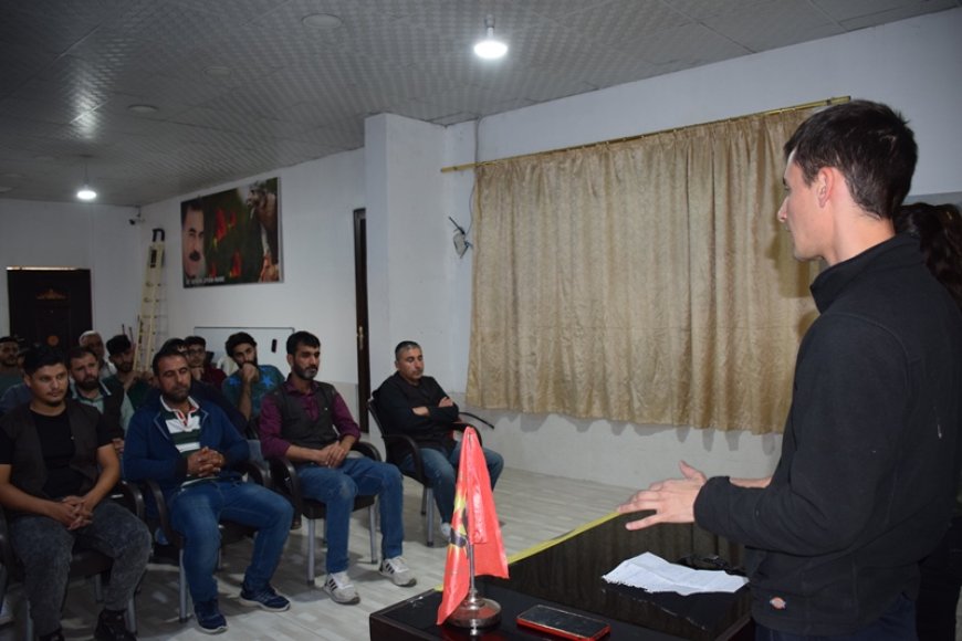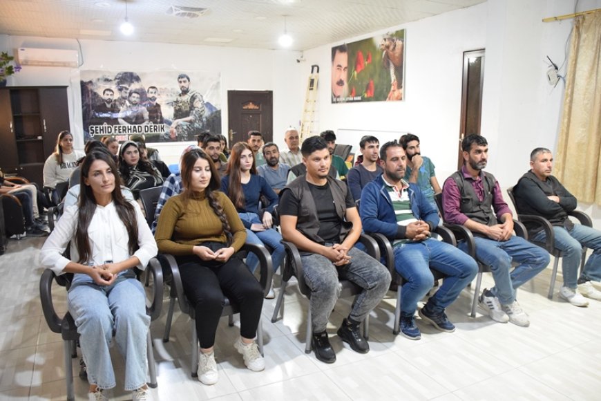 DERÎK- Devrimci Gençlik Hareketi ve Genç Kadınlar Birliği, Derik’teki Şahid Herekol matbaasında, Önder Apo’ya yönelik uygulanan mutlak tecrit politikalarının derinleştirilmesinin yol açacağı tehlikeleri ve tecritle eş zamanlı olarak İşgalci Türk devletinin Medya Savunma Alanları ile tüm Kurdistan parçalarına yönelik düzenlediği işgal, imha ve soykırım saldırılarına ilişkin bir seminer düzenledi.