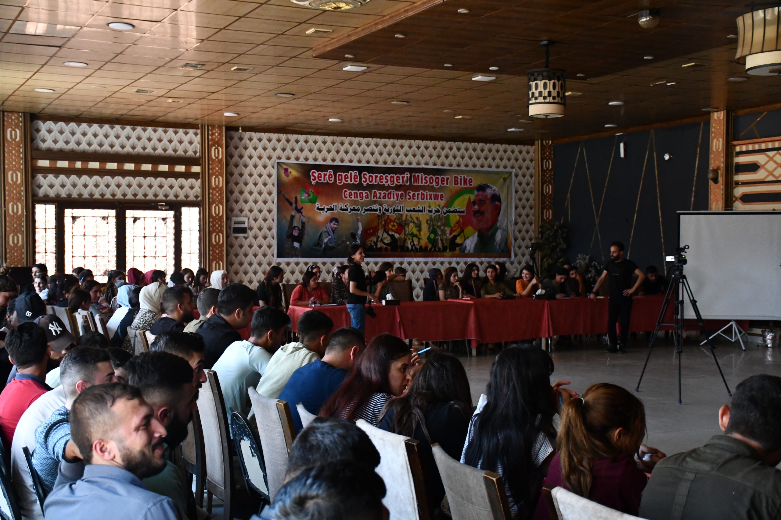 Gençler ve genç kadınlar bugün Tevgera Ciwanên Şoreşger ve Yekîtiya Jinên Ciwan öncülüğünde “Toplumsal Cinsiyetçiliğin Aşılması” konulu çalıştayda bir araya geldi.