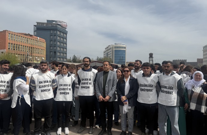Şêx Seîd/Dağkapı Meydanı’nda bir araya gelen kitleye, DEM Parti milletvekilleri Beritan Güneş ve Onur Düşünmez’in yanı sıra Özgür Kadın Hareketi (Tevgera Jinên Azad-TJA) aktivistleri, Barış Anneleri ile kentte bulunan çok sayıda sivil toplum kuruluşu temsilcileri katıldı.