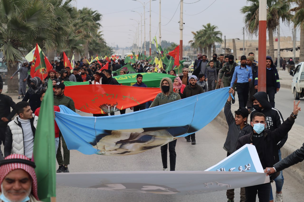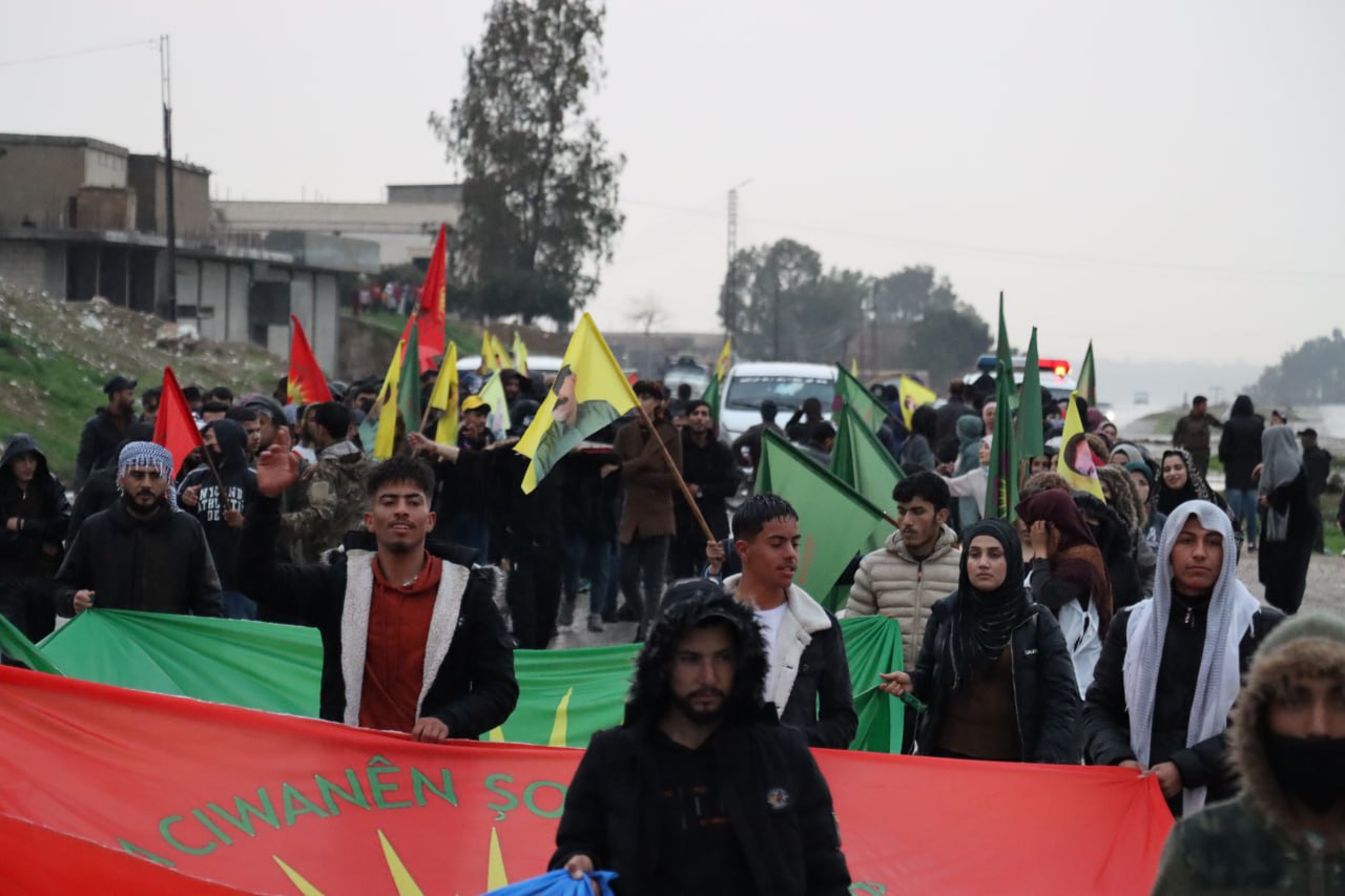 RAQA- Devrimci Gençlik Hareketi ve Genç Kadınlar Birliği tarafından Kurtarılmış Bölgelerde gerçekleştirilen uzun yürüyüş ilk günü Rakka kırsalı Al-Sahel köyünde tamamlandı.